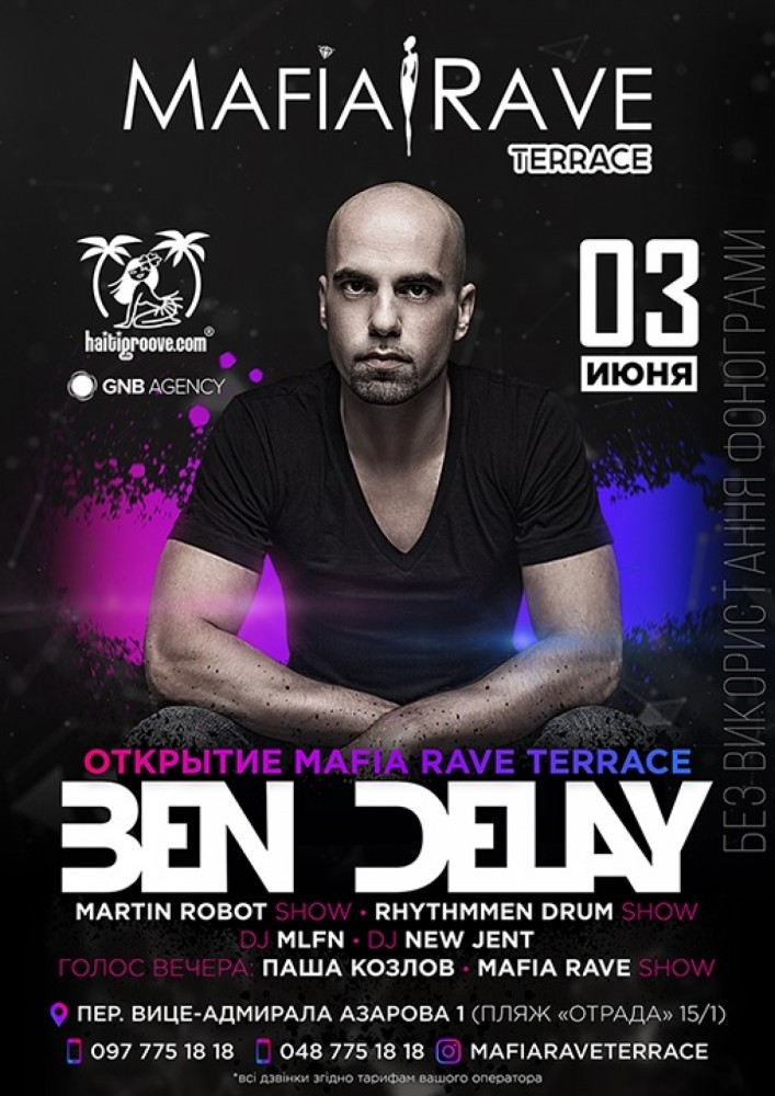 В субботу, 3 июня, в районе пляжа «Отрада» состоится открытие Mafia Rave Terrace. Как сообщают организаторы, этот проект объединил в себе уникальную концепцию качественного пляжного отдыха, новый формат ночной жизни, а также обновленную lounge-зону. В рамках открытия гостей клуба порадуют Martin Robot show и Rhuthmmen drum show, выступление Dj's MLFN и New Jent, а проведет зрителя сквозь звездную плеяду Павел Козлов. Ключевым гостем программы станет всемирно известный диск-жокей и sound-продюсер, автор легендарного хита «I Never Felt So Right» Ben Delay. Mafia Rave Terrace располагается по адресу: переулок Вице-адмирала Азарова, 1 (пляж «Отрада» 15/1). СМЕРТЬ РОСІЙСЬКИМ ОКУПАНТАМ! Помітили помилку? Виділяйте слова з помилкою та натискайте control-enter |