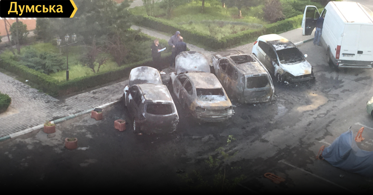 На охраняемой парковке жилого комплекса возле парка Победы сгорели четыре автомобиля: их подожгли (обновлено, фото)