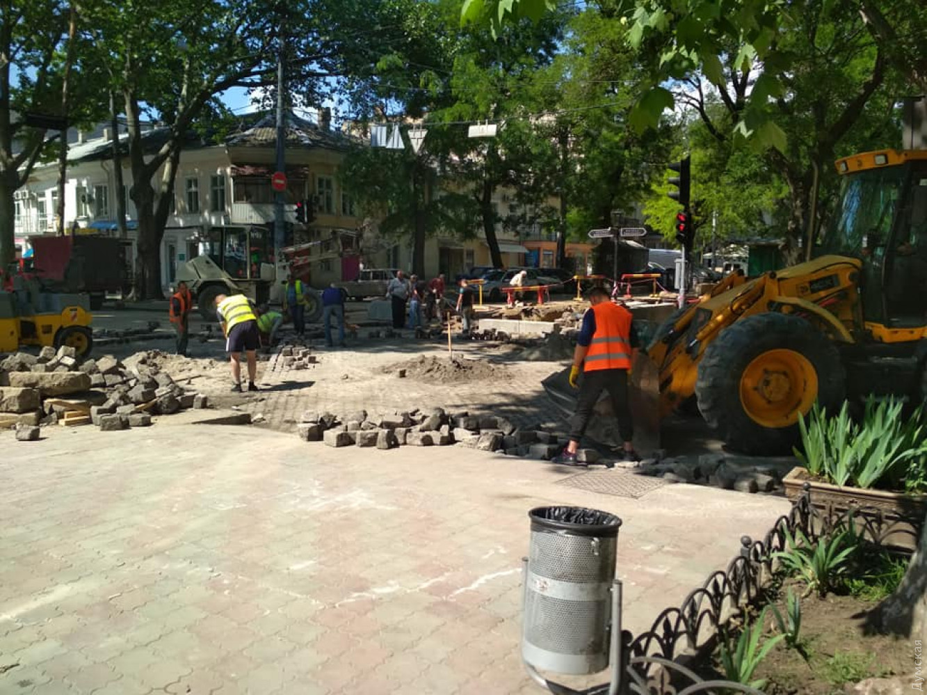 На перекрестке Пушкинской и Базарной уже укладывают брусчатку