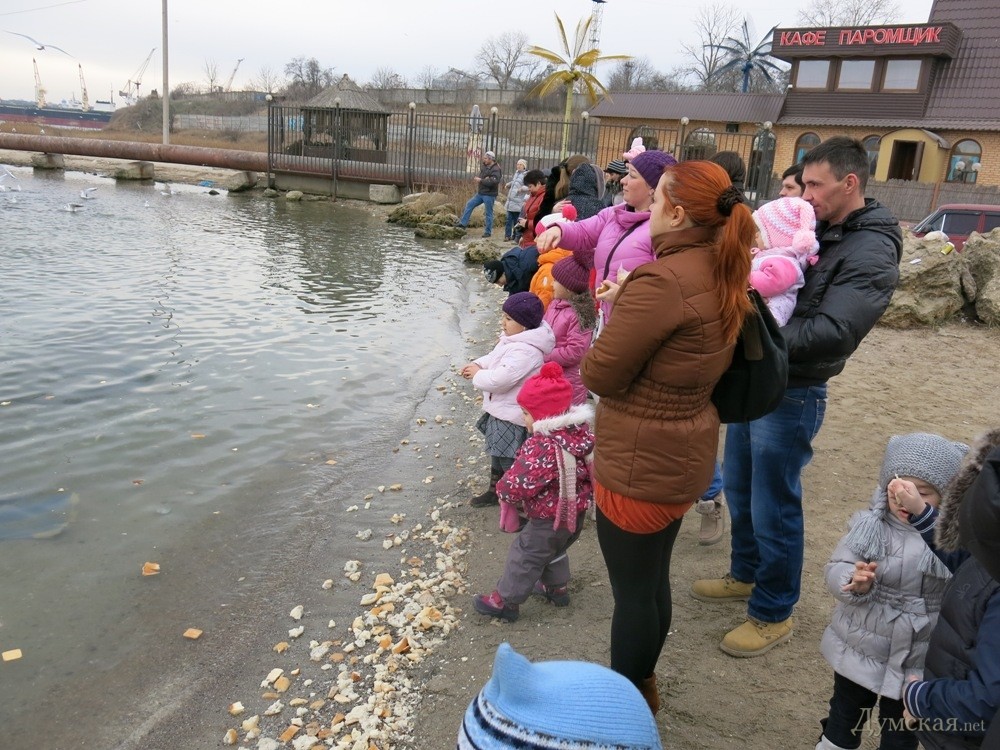 На выходных это место привлекает десятки одесских и ильичевских семей — люди массово приезжают покормить голодных птиц и фотографироваться.