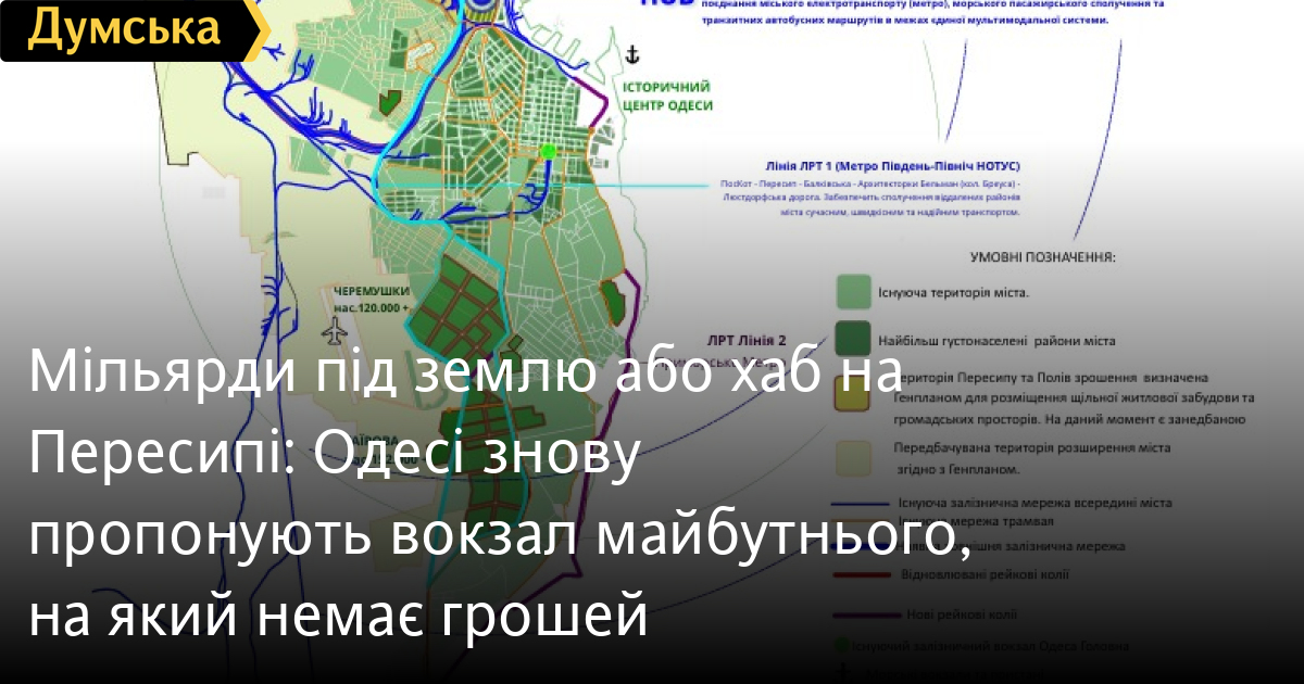 Мільярди під землю або хаб на Пересипі: Одесі знову пропонують вокзал майбутнього, на який немає грошейДо обговорення тупикового вокзалу «Одеса-Головна», який блокує розвиток центру міста, вкотре повернулися одеські архітектори. Однак за амбітними ідеями одразу слідує «холодний душ» від експертів. Як підкреслює архітектор Володимир Мещеряков, дискутувати про перенесення вокзалу або будівництво тунелів можна нескінченно, але практичних перспектив у таких мегапроєктів у найближчому майбутньому просто немає. «Думаю, грошей на реалізацію подібних ідей може не бути ще десятиліттями. Але самі ідеї — це добре. Якщо вони виявляться життєздатними, з часом можна буде скоригувати Генеральний план. З іншого боку, коли кажуть, що вокзал тупиковий, то хочу нагадати, що в Одесі всі дороги теж ведуть до одного місця — до моря, і нічого страшного. Головне — розуміння і усвідомлення, як використовувати переваги», — зазначив він. Проте масштаб проблеми ігнорувати складно. Архітектор Олександр Овсянкін нагадує, що нинішній вокзал задумувався як окраїнний об'єкт, але сьогодні він перетворився на справжній міський тромб. Тупикова система змушує витрачати зайвий час на маневри поїздів, а навколо колій утворилося понад 330 гектарів депресивних і ізольованих територій, які могли б служити місту. Як альтернатива звучать пропозиції щодо перенесення вокзалу в район Пересипу або його занурення під землю. «Пересип, точніше територія біля одеської ТЕЦ, має унікальну перевагу. Вона знаходиться майже в географічному і демографічному центрі міста, при цьому там мало щільної забудови і поруч історичний центр. Мова йде не просто про новий вокзал, а про створення інтегрованого транспортного вузла», — каже архітектор. Насправді всі ці ідеї роками кочують з одного документа в інший. Наприклад, у чинному Генеральному плані Одеси давно прописано будівництво нового вокзалу в районі вулиць Хімічної та Столбової, але проєкт так і залишився на папері. Згідно з документом, пропонується побудувати ще один вокзал і зробити його транзитним, щоб збільшити пропускну здатність. Голова транспортної комісії міськради Петро Обухов вважає цей варіант логічним. Однак ідея транспортного хаба на Пересипу, на його думку, виглядає більш перспективною, оскільки враховує інтереси жителів Слобідки, селища Котовського і Молдаванки. Водночас він не виключає і третій варіант, який згадується в Генплані — залишити вокзал на колишньому місці, але заховати залізницю під землю, що не скасовує будівництва ще одного об'єкта, що на Хімічній, що не Пересипу. «Умовно кажучи, на межі міста залізниця могла б йти під землю і далі йти тунелем до Привокзальної площі — як це зроблено, наприклад, у Варшаві або Берліні. Але це дуже дорогий мегапроєкт. Один кілометр тунелю коштує близько 100 мільйонів доларів — приблизно як метро», — зазначив Обухов. Овсянкін у свою чергу додав, що транспортні вузли Одеси в цілому працюють розрізнено, тому проблему потрібно вирішувати комплексно. Центральний автовокзал розташований не там, де це зручніше пасажирам, а там, де колись було простіше зробити розв'язку. Аеропорт фактично позбавлений нормального громадського транспорту. Морський вокзал, який раніше активно працював, практично втратив своє значення — ще до повномасштабного вторгнення пасажирські рей