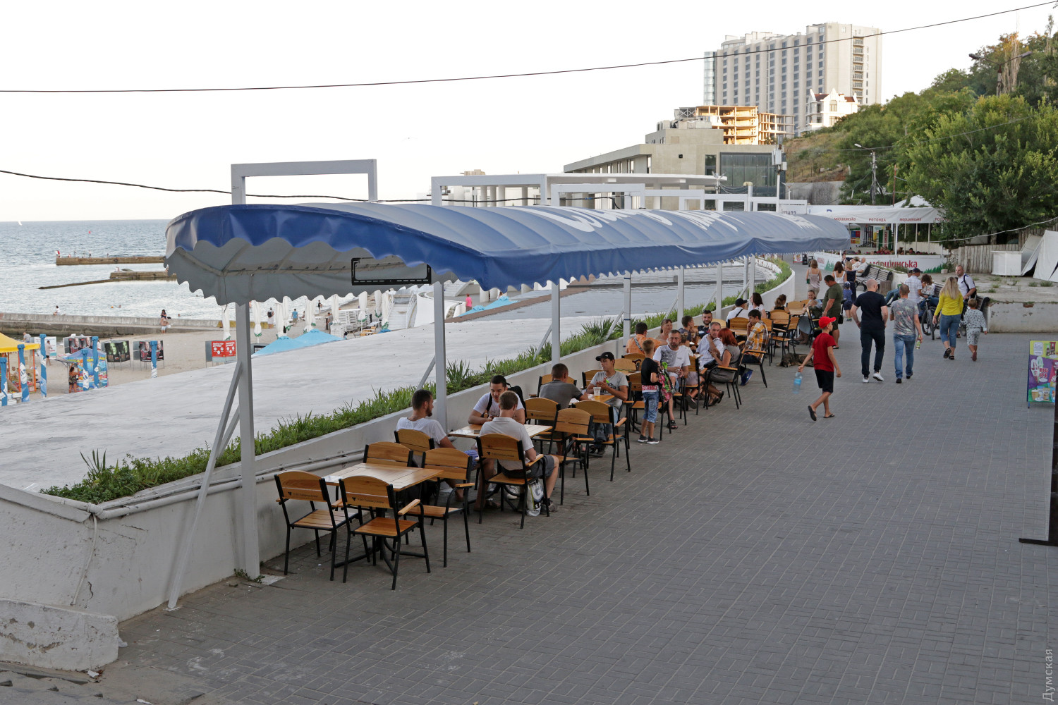 Продолжаем тему траура по погибшим в отеле «Токио-Стар». На одесском побережье сегодня не так шумно, как обычно, передает корреспондент «Думской», но и трауром это назвать нельзя. В Аркадии толпы отдыхающих снуют по центральной аллее. В кафе и ресторанчиках почти все столики заняты, однако музыка звучит только в некоторых. Клуб Ibiza так и не отменил запланированный концерт.