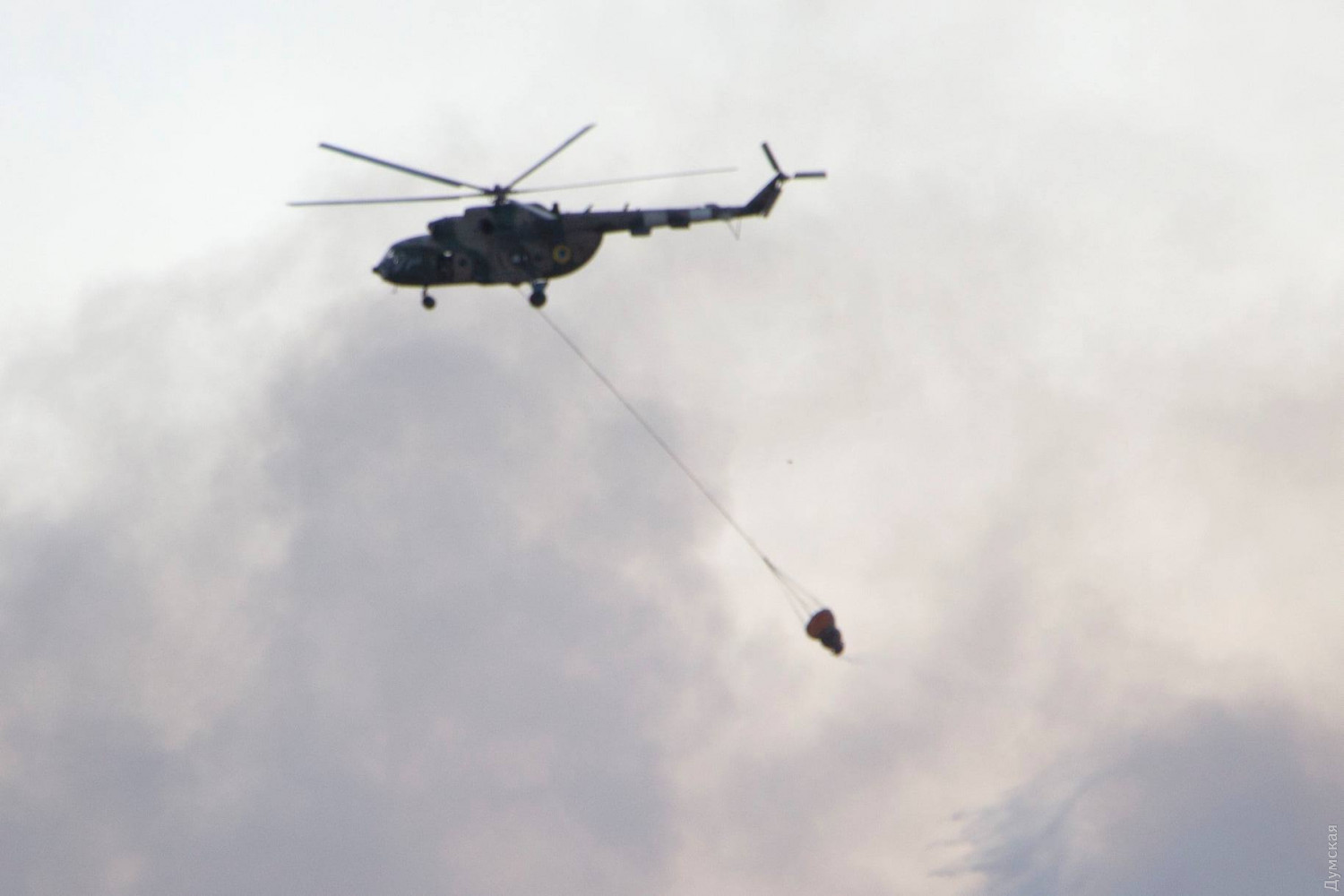 Тушение пожара продолжается уже больше трех часов. Там работает пожарный вертолет. Несколько минут назад к району подошел пожарный самолет ГСЧС Ан-32П, специально вылетевший с базы чрезвычайщиков в Нежине.