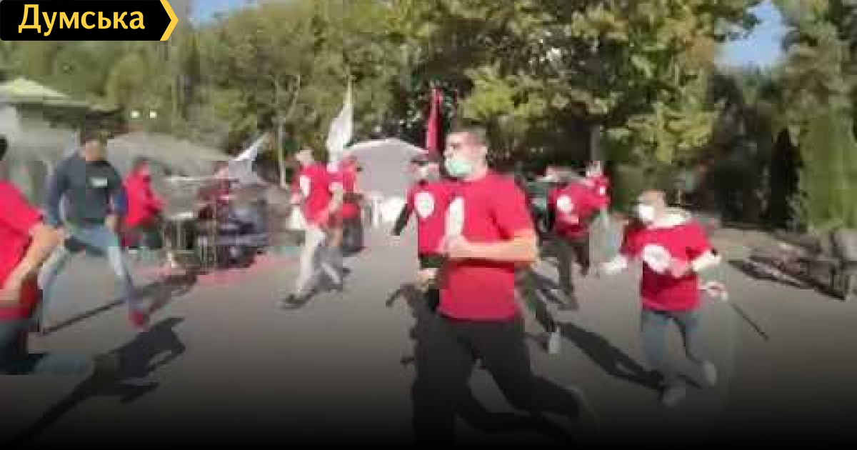 На поселке Котовского активисты пророссийской партии Шария под аккомпанемент барабана подрались с людьми, похожими на членов «Национального корпуса».
