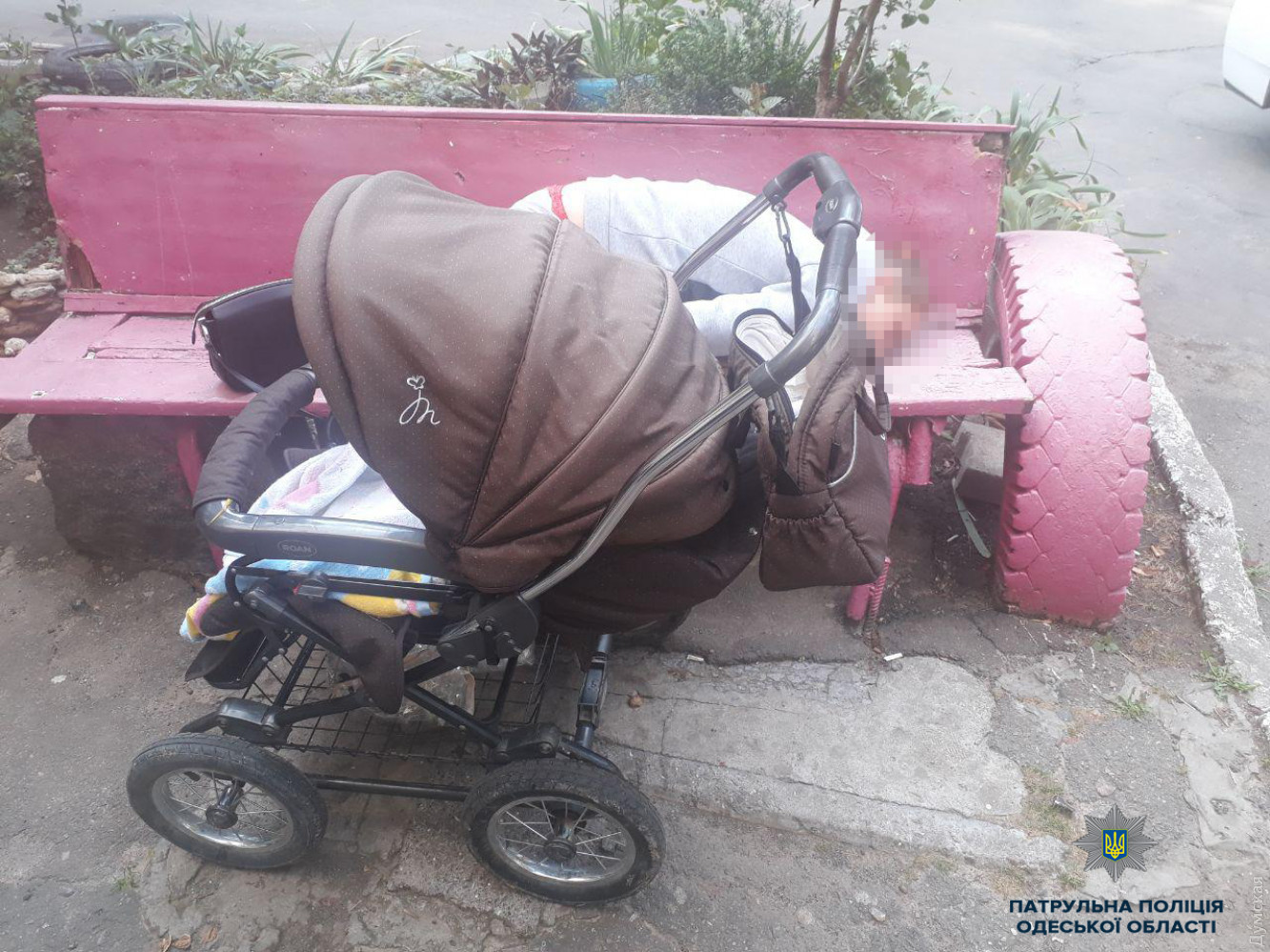 Вчера около 17 часов патрульные получили сообщение о том, что в одном из дворов на Днепропетровской дороге ребенок нуждается в помощи. Прибыв по указанному адресу, инспекторы обнаружили женщину в сильном наркотическом опьянении — она спала на скамейке, а ее малолетний ребенок был без присмотра в коляске.