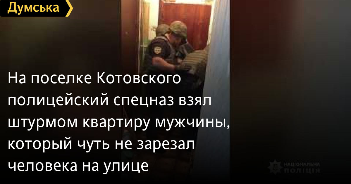 На поселке Котовского полицейский спецназ взял штурмом квартиру мужчины, который чуть не зарезал человека на улицеПолиция задержала 54-летнего одессита, который на перекрестке улиц Марсельской и Керченской ударил ножом в грудь своего знакомого и скрылся на автомобиле. Как сообщили в ГУНП, правоохранители быстро установили место жительства нападавшего и спецназ взял его квартиру штурмом. Задержанный объяснять свой поступок отказался. 49-летнего пострадавшего госпитализировали со сквозным ранением сердца. СМЕРТЬ РОССИЙСКИМ ОККУПАНТАМ! Заметили ошибку? Выделяйте слова с ошибкой и нажимайте control-enter |