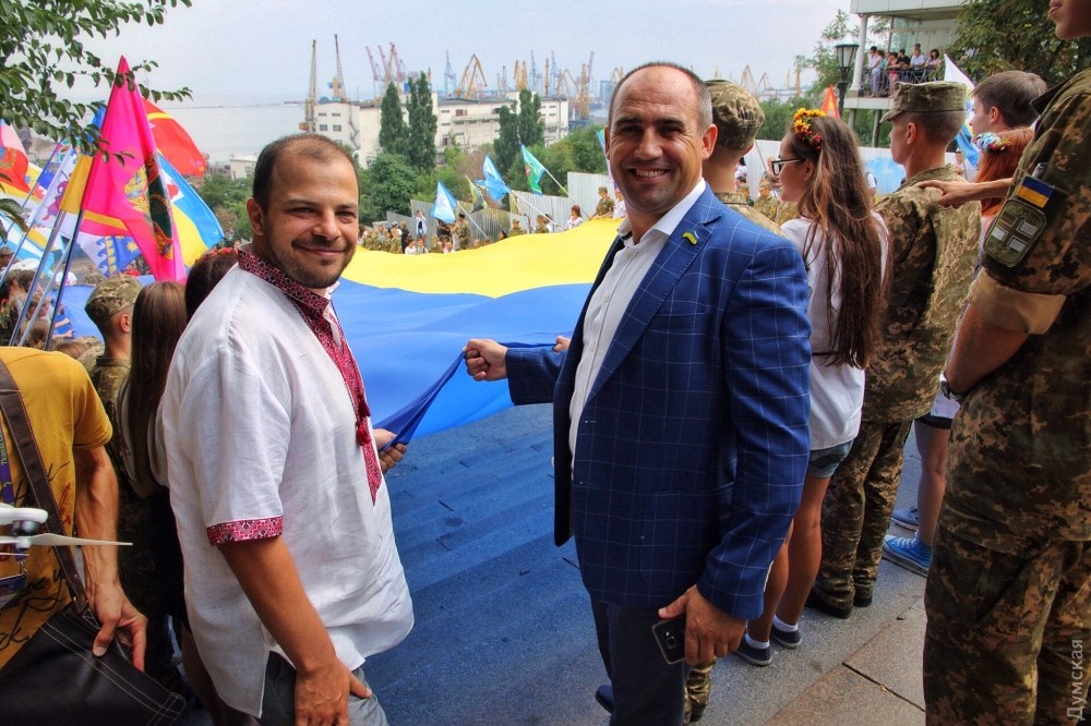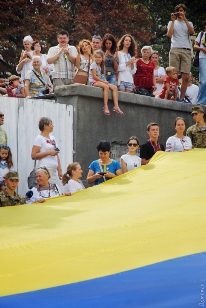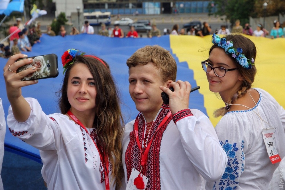 Мероприятие состоялось в рамках Вышиванкового фестиваля. Напомним, ранее возле здания Одесской областной госадминистрации прошло торжественное поднятие государственного флага. Фото — Александр Гиманов