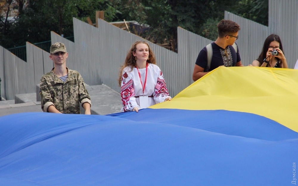 На Потемкинской лестнице развернули 25-метровый флаг Украины