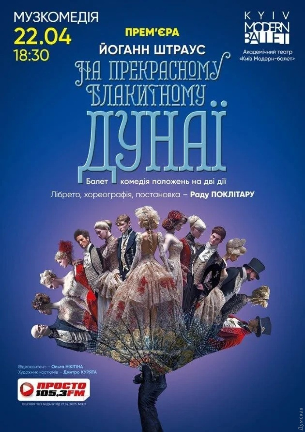 «На прекрасному блакитному Дунаї»: в Одессе покажут новый балет Раду Поклитару (на правах рекламы)Премьера балета «На прекрасному блакитному Дунаї» состоится в одесской Музкомедии 22 апреля. Академический театр «Киев Модерн-балет» представит спектакль в двух действиях в постановке Раду Поклитару. Хореографическая постановка на музыку Иоганна Штрауса откроет для зрителей Вену позапрошлого века, погрузит в атмосферу непрекращающегося праздника. Действо сочетает современный пластический театр и бальные танцы эпохи ар-нуво, когда музыка была языком чувств. Художник по костюмам — Дмитрий Курята. Автор видеопроекций — Ольга Никитина. Начало в 18:30. Билеты можно приобрести здесь. СМЕРТЬ РОССИЙСКИМ ОККУПАНТАМ! Заметили ошибку? Выделяйте слова с ошибкой и нажимайте control-enter |