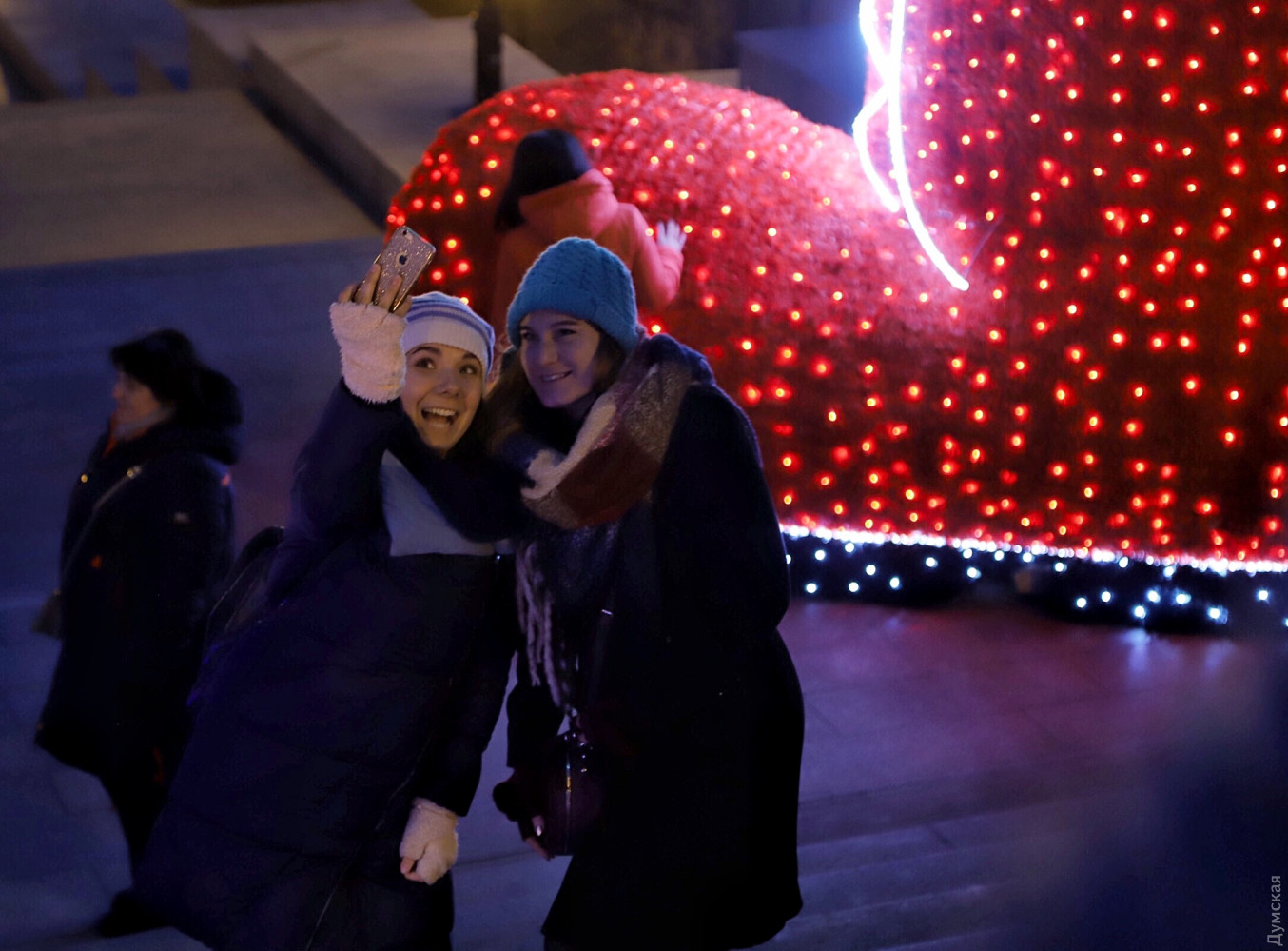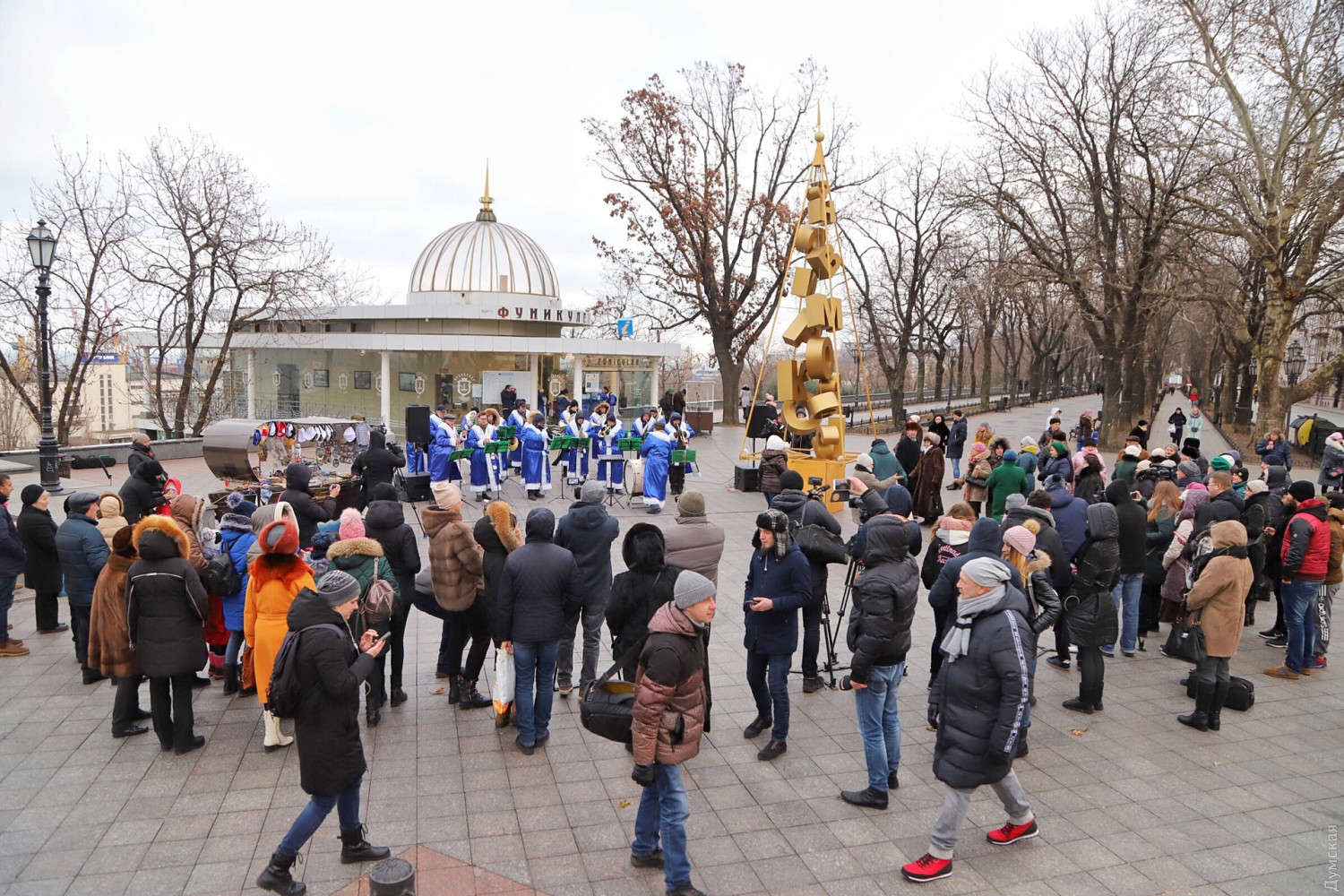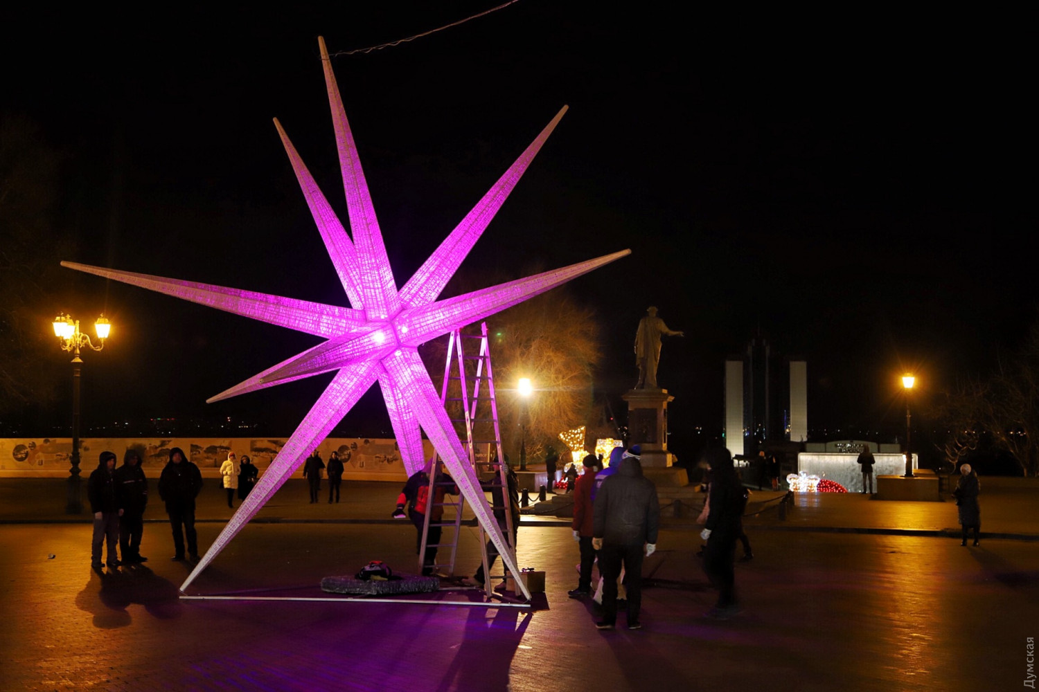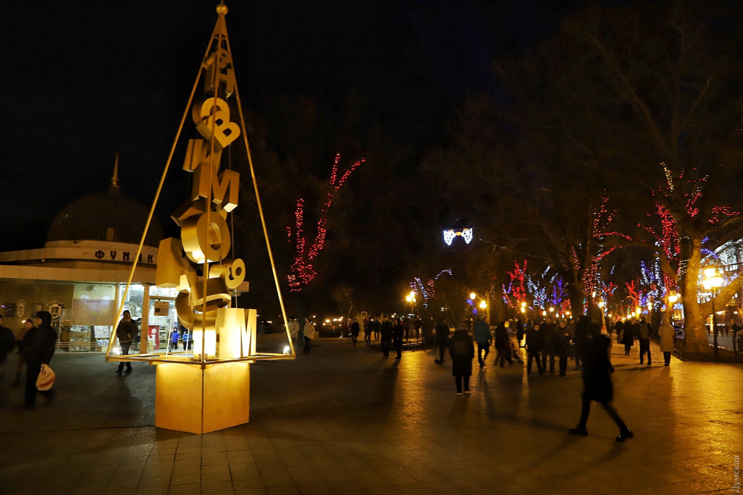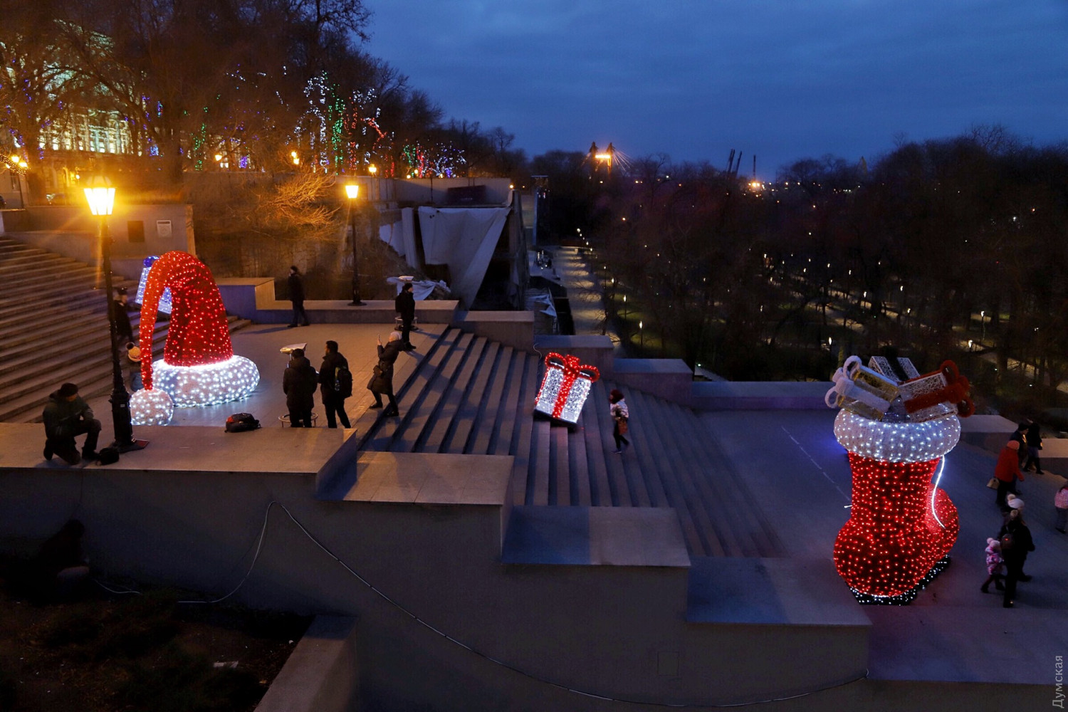 Торжественное открытие арт-елки состоялось сегодня днем на Приморском бульваре. Перед немногочисленными собравшимися выступил муниципальный духовой оркестр — музыканты облачились в халаты дедушек Морозов. Кроме елки, на площади возле Дюка появилось несколько световых инсталляций производства компании «Люмьер». Сейчас специалисты компании заканчивают монтировать украшения, в которых, по их словам, использовано более 10 тысяч светодиодов. Отметим, установка арт-елок возле Дюка стала уже традицией. Каждая новогодняя конструкция не похожа на свою предшественницу — в 2016 году это была конусообразная башня с прорезями в виде звезд, в 2017 — пряничный домик, а в 2014 — вязаная. СМЕРТЬ РОССИЙСКИМ ОККУПАНТАМ! Заметили ошибку? Выделяйте слова с ошибкой и нажимайте control-enter |