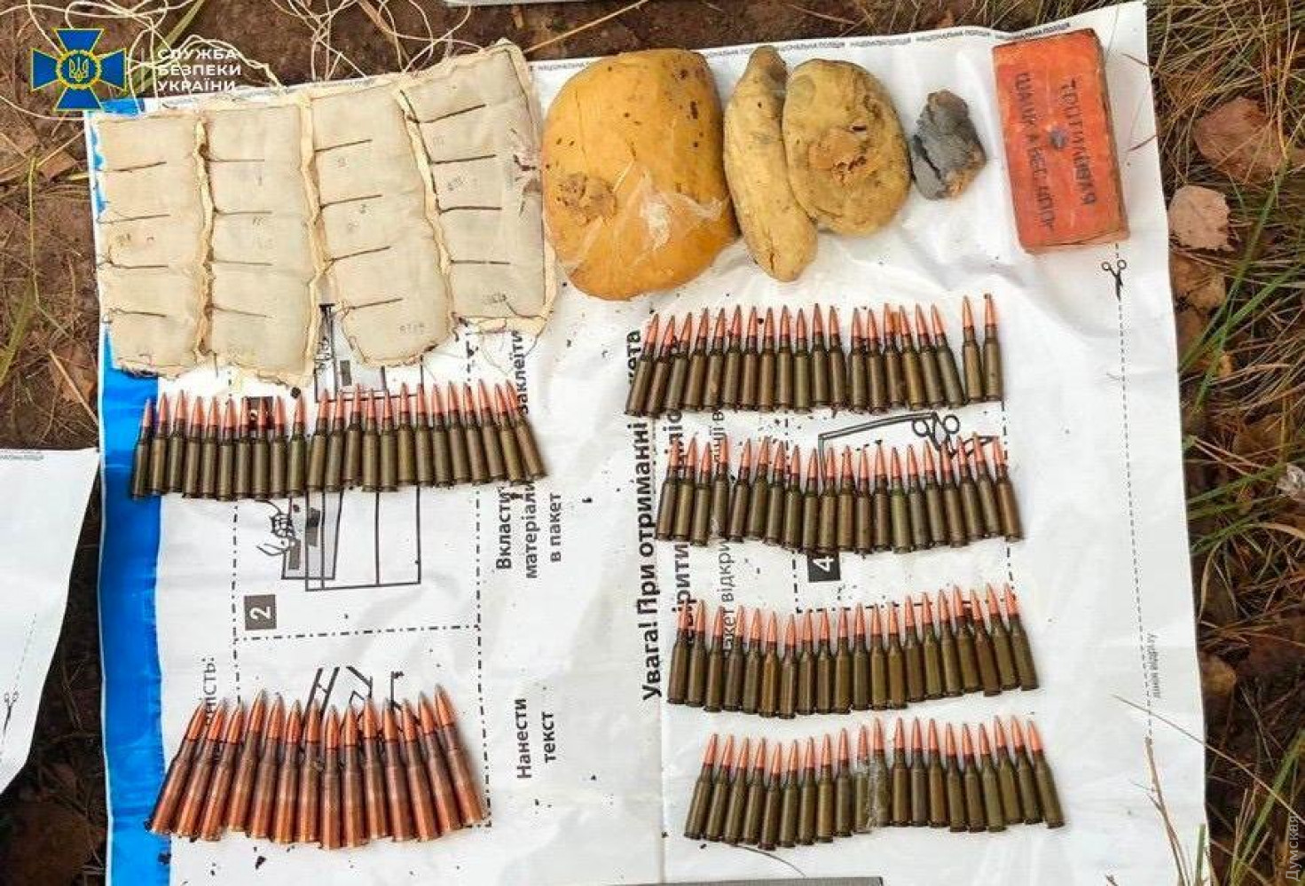 Служба безопасности Украины нашла в Ровенской области схрон с большим количеством взрывчатки. Военные средства поражения сотрудники спецслужбы обнаружили в замаскированном в лесополосе тайнике вблизи поселка Старое Село Рокитновского района. Правоохранители изъяли из тайника 4 ручные противотанковые гранаты РПГ-22, два килограмма пластида, 0,5 кг тротила, самодельное взрывное устройство, 12 гранат Ф-1 с запалами, а также почти 1000 патронов различного калибра. Оружие, взрывчатка и боеприпасы направлены на экспертизу. Открыто уголовное производство по ч. 1 ст. 263 Уголовного кодекса Украины, продолжаются следственно-оперативные действия по установлению и привлечению к ответственности лиц, причастных к противоправной деятельности. «Проверяется информация о нелегальной переправке изъятых средств поражения из района проведения операции Объединенных сил», — говорится в сообщении СБУ. СМЕРТЬ РОССИЙСКИМ ОККУПАНТАМ! Заметили ошибку? Выделяйте слова с ошибкой и нажимайте control-enter |