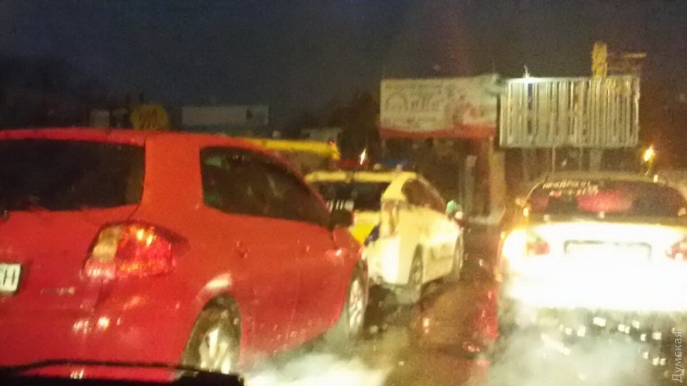 Дама на красной «Тойоте» стукнула сзади полицейскую машину, было это ещё около 16 часов и дождя практически не было.Но у многих сразу включилось «Кисель-ТВ»
