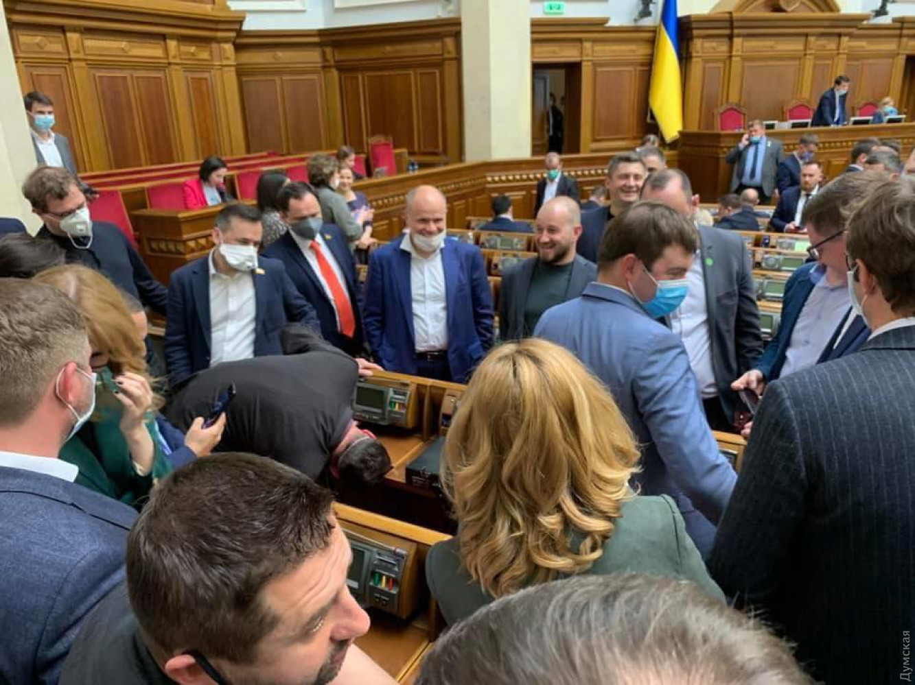 В зале голосования Верховной Рады Украины произошел досадный инцидент – в секторе фракции «Слуга народа» загорелся пульт для голосования. Пульт задымился у депутата-«слуги» Максима Ткаченко. «Первое, что приходит в голову, на воре и шапка горит. Но то у мелких воров. У воров покрупнее — пульт горит», — прокомментировал произошедшее политолог Тарас Березовец. Судя по фото, инцидент вызвал у пропрезидентских депутатов неистовое веселье. В связи с происшествием в заседании был объявлен получасовой перерыв. СМЕРТЬ РОСІЙСЬКИМ ОКУПАНТАМ! Помітили помилку? Виділяйте слова з помилкою та натискайте control-enter |