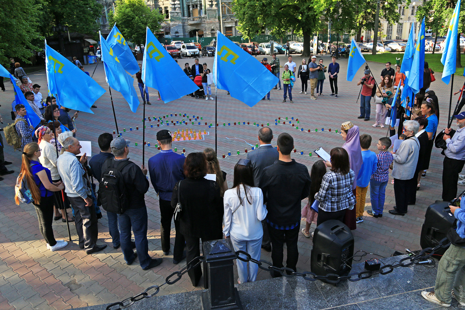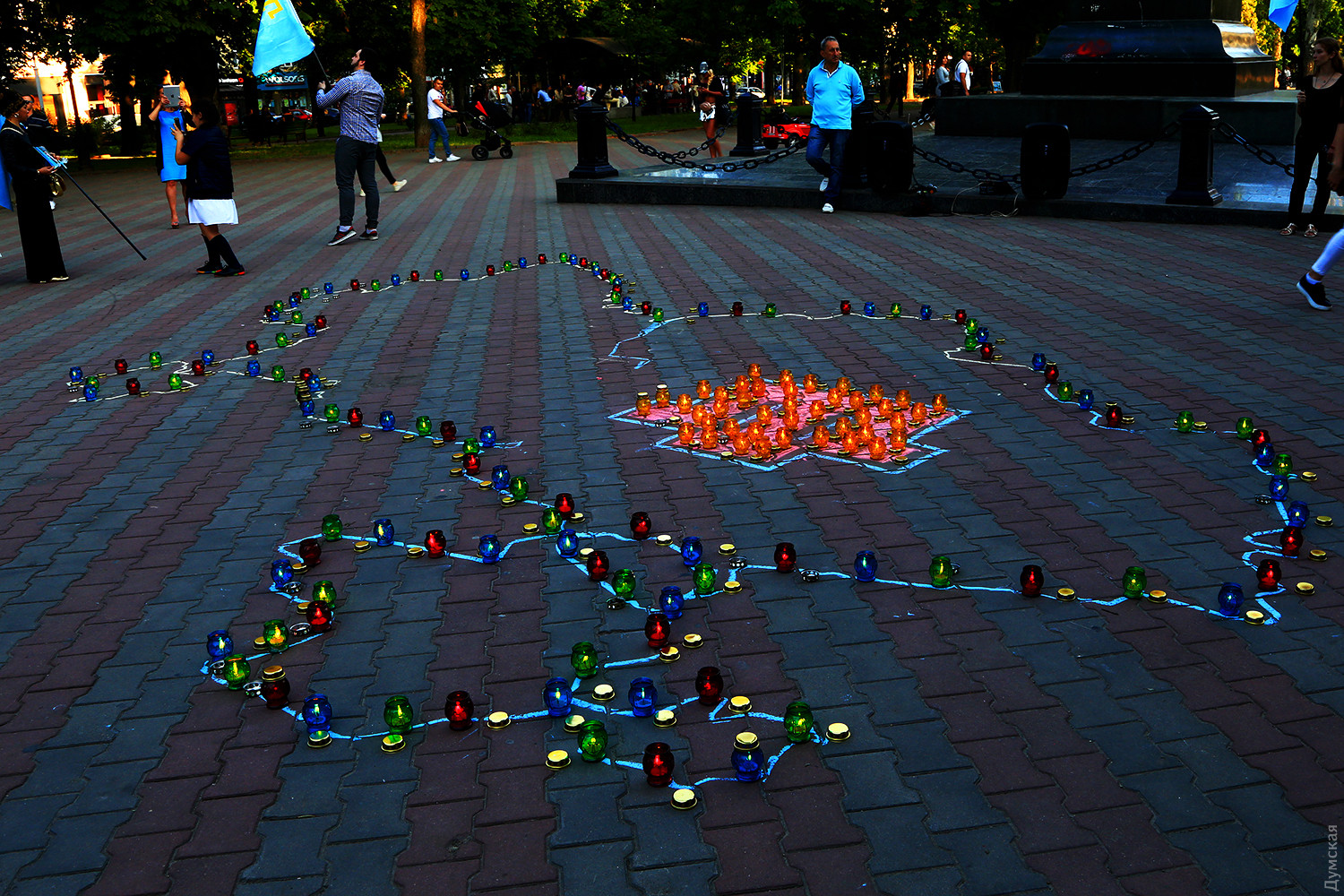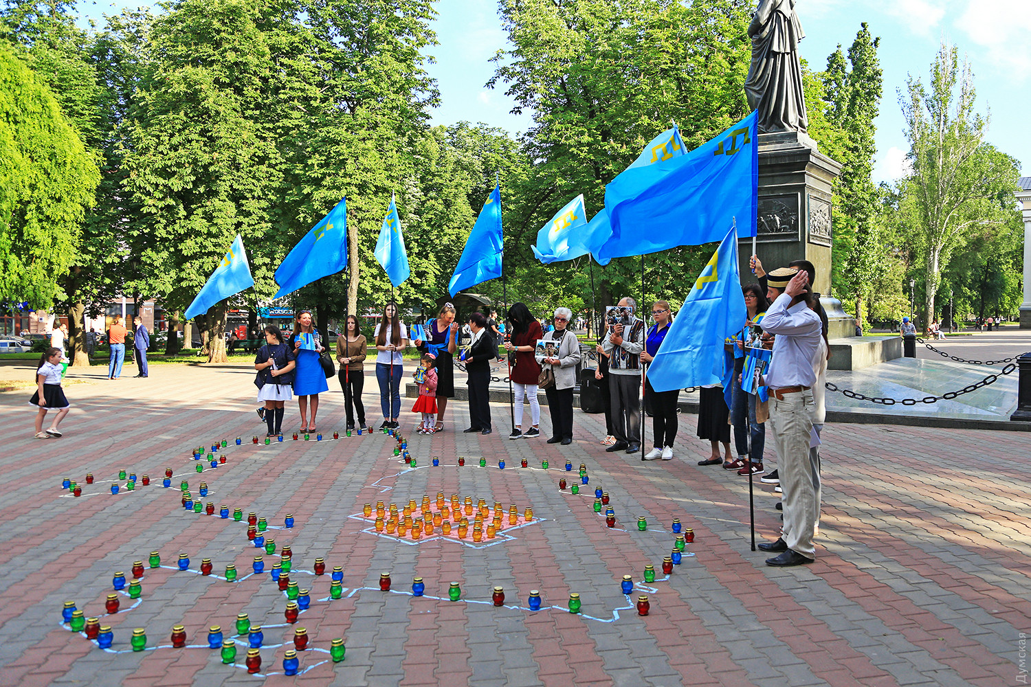 Сегодня вечером на Соборной площади состоялся митинг-реквием памяти жертв депортации крымско-татарского народа. В этот день ровно 74 года назад сталинский режим выдворил с родной земли около 180 тысяч коренных жителей Крыма. Перед собравшимися с речью выступила глава крымско-татарской общины Мерьем Джалилова. «Это день памяти и скорби. Это болезненная рана, которая кровоточит всегда. Именно в этот день она становится еще более болезненной»,- отметила Мерьем Джалилова. Представители общины минутой молчания почтили память погибших, которые не перенесли депортацию, а очевидцы событий поделились своими воспоминаниями. Как отметила руководитель секретариата «БПП «Солидарность» в Одесской области Валентина Шульц, активисты партии ежегодно вместе с крымско-татарской общиной проводят такой митинг-реквием. «Сегодняшний режим в Крыму идет по стопам НКВД и повторяет ошибки истории. Многие люди сидят в тюрьмах, происходит геноцид коренного населения Крыма, поэтому все должны помнить о тех страшных событиях», — отметила Валентина Шульц. Собравшиеся читали стихи и слушали национальные песни крымских татар. В знак памяти и недопущения тех событий в небо запустили десяток белых голубей. В завершении мероприятия собравшиеся провели всеукраинскую акцию «Зажги свечу памяти в своем сердце». Несколько сотен лампад были выложены в форме Украины вместе с аннексированным Крымом. СМЕРТЬ РОСІЙСЬКИМ ОКУПАНТАМ! Помітили помилку? Виділяйте слова з помилкою та натискайте control-enter |