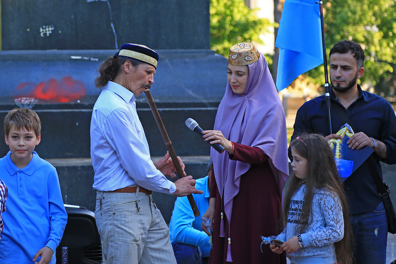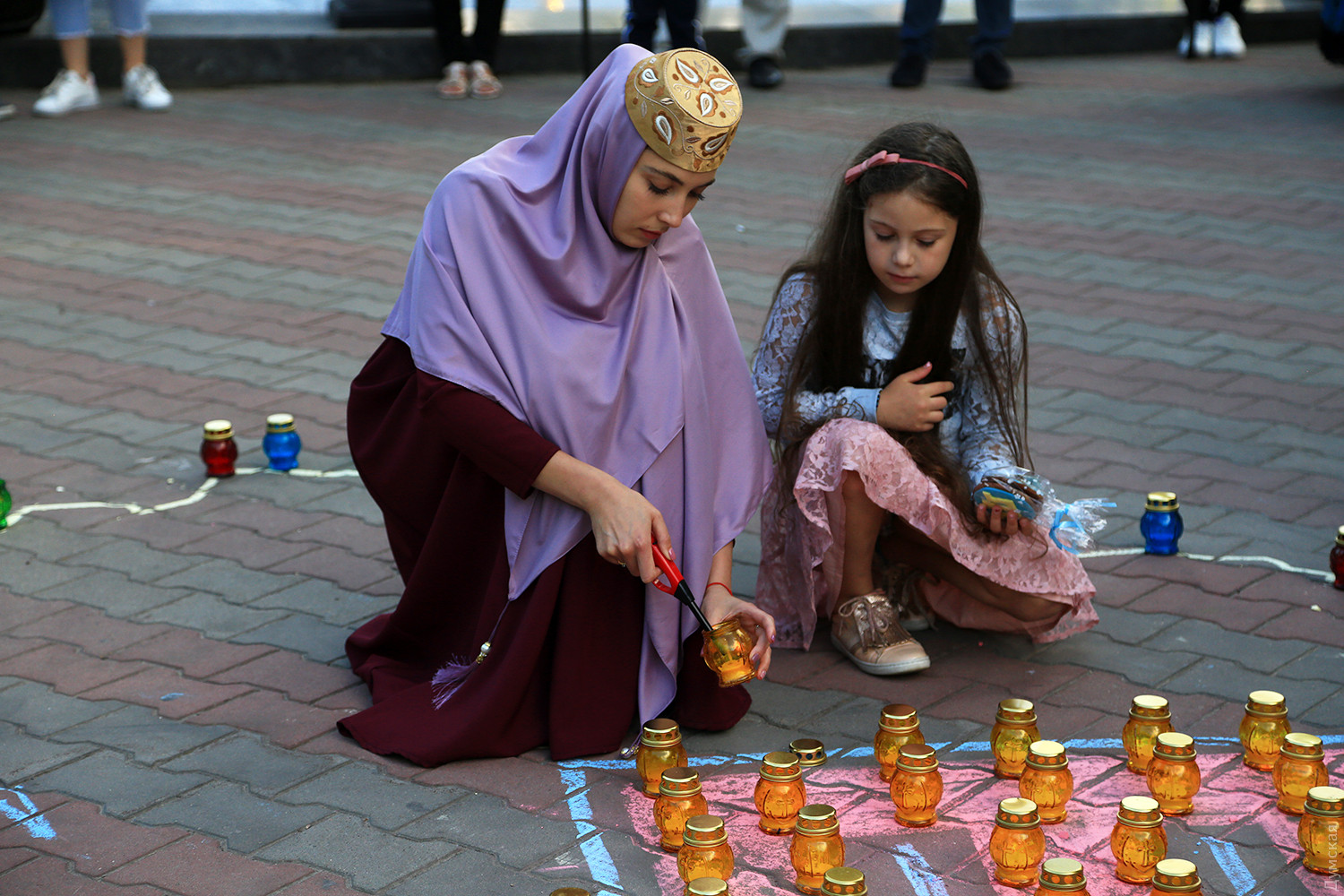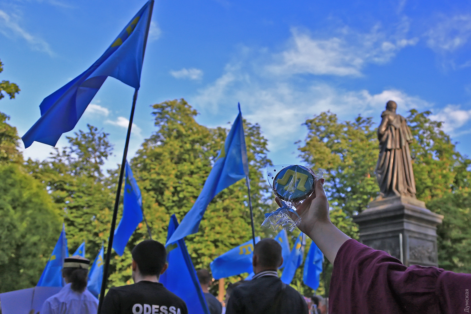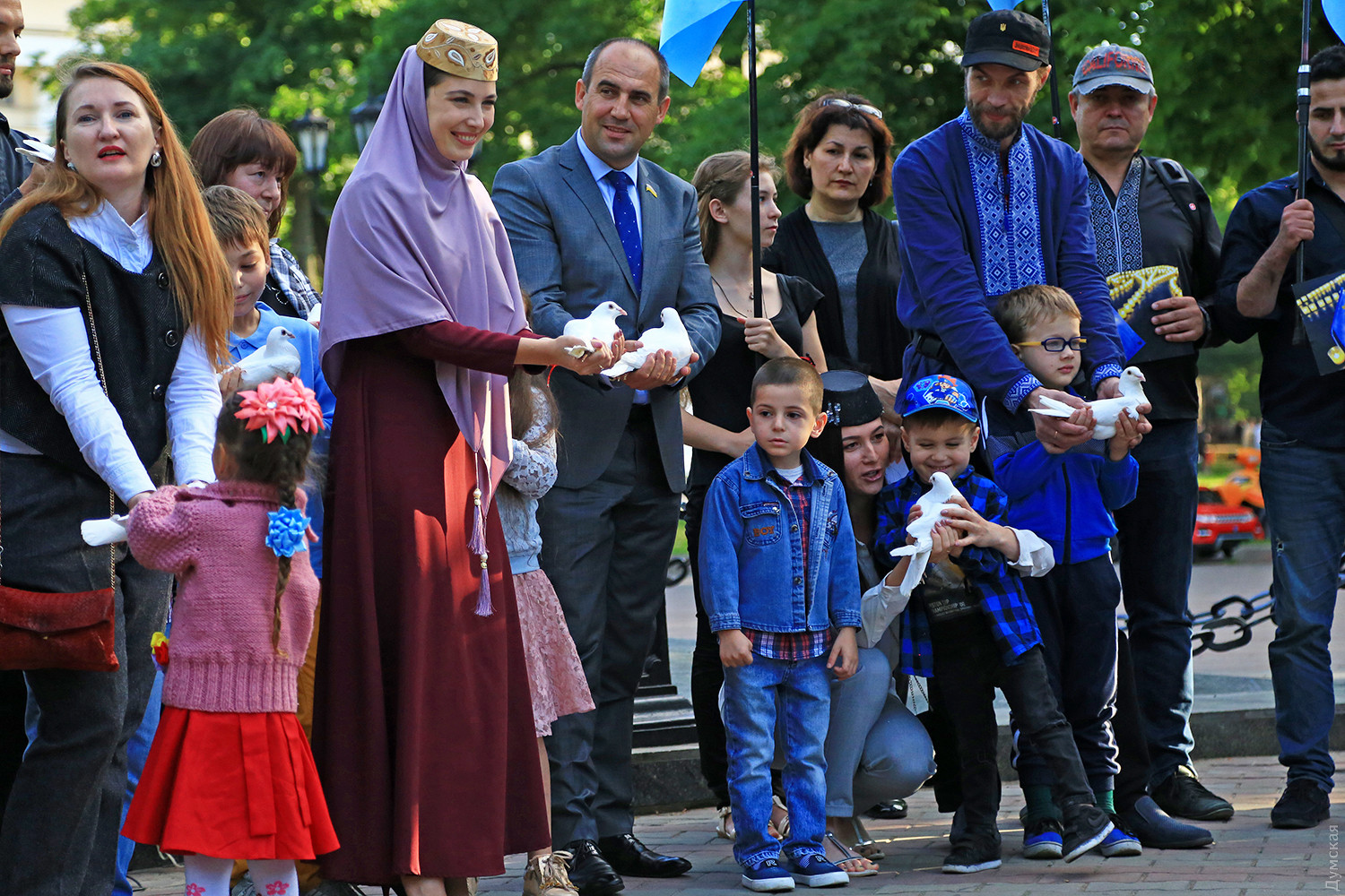 Сегодня вечером на Соборной площади состоялся митинг-реквием памяти жертв депортации крымско-татарского народа. В этот день ровно 74 года назад сталинский режим выдворил с родной земли около 180 тысяч коренных жителей Крыма. Перед собравшимися с речью выступила глава крымско-татарской общины Мерьем Джалилова. «Это день памяти и скорби. Это болезненная рана, которая кровоточит всегда. Именно в этот день она становится еще более болезненной»,- отметила Мерьем Джалилова. Представители общины минутой молчания почтили память погибших, которые не перенесли депортацию, а очевидцы событий поделились своими воспоминаниями. Как отметила руководитель секретариата «БПП «Солидарность» в Одесской области Валентина Шульц, активисты партии ежегодно вместе с крымско-татарской общиной проводят такой митинг-реквием. «Сегодняшний режим в Крыму идет по стопам НКВД и повторяет ошибки истории. Многие люди сидят в тюрьмах, происходит геноцид коренного населения Крыма, поэтому все должны помнить о тех страшных событиях», — отметила Валентина Шульц. Собравшиеся читали стихи и слушали национальные песни крымских татар. В знак памяти и недопущения тех событий в небо запустили десяток белых голубей. В завершении мероприятия собравшиеся провели всеукраинскую акцию «Зажги свечу памяти в своем сердце». Несколько сотен лампад были выложены в форме Украины вместе с аннексированным Крымом. СМЕРТЬ РОСІЙСЬКИМ ОКУПАНТАМ! Помітили помилку? Виділяйте слова з помилкою та натискайте control-enter |