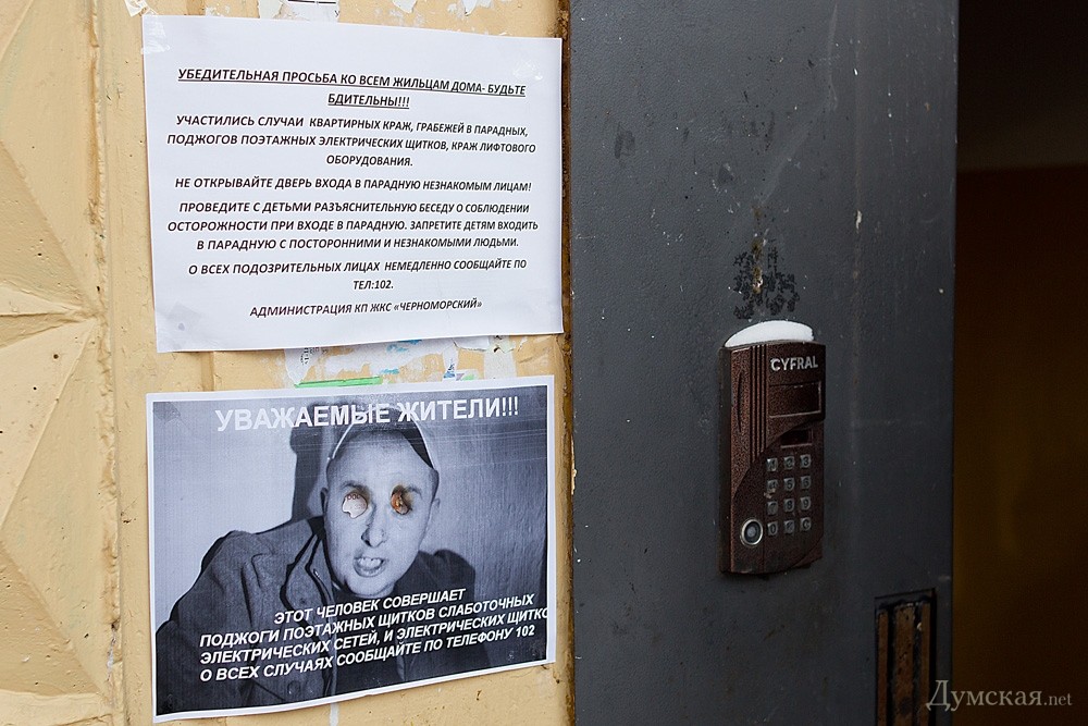В Киевском районе Одессы разыскивается поджигатель электрощитовых. Объявления с фотографией преступника расклеены на большинстве парадных КП ЖКС «Черноморский»