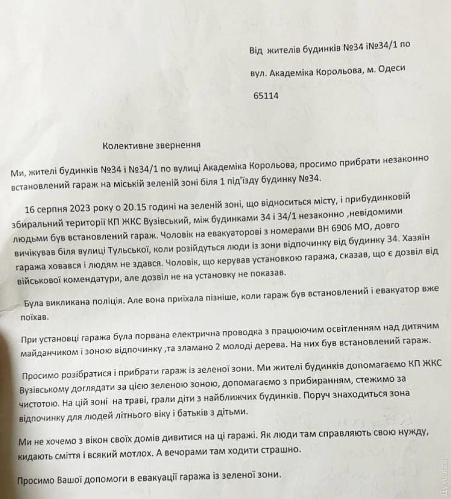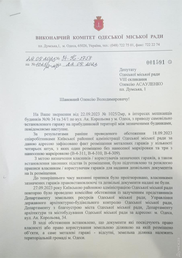 На Таїрова у дворі незаконно встановили гараж. З`ясувалося, що сусідні там стоять також без дозволуКомісія Київської районної адміністрації встановила, що чотири гаражі у дворі будинків №34 і 34/1 на Корольова стоять без будь-яких дозвільних документів. Як повідомив депутат Одеської міськради Олексій Асауленко, перевірку провели після серпневої скарги мешканців будинків на незаконне встановлення гаража на зеленій території. Одесити поскаржилися на те, що ввечері на подвір'я приїхала вантажівка, з якої під покровом темряви вивантажили гараж, нібито «за дозволом від військової комендатури», хоча власник гаража людям жодних документів не показав. Перевірка встановила, що гараж став четвертим у ряду з такими ж залізними будками, встановленими значно раніше. Жоден із власників гаражів не отримував дозволу на встановлення свого МАФу. Віце-мер Олександр Філатов заявив, що направив розпорядження на демонтаж гаражів у КП «Одеське міське проєктно-виробниче бюро архітектури та містобудування». Помітили помилку? Виділяйте слова з помилкою та натискайте control-enter |
