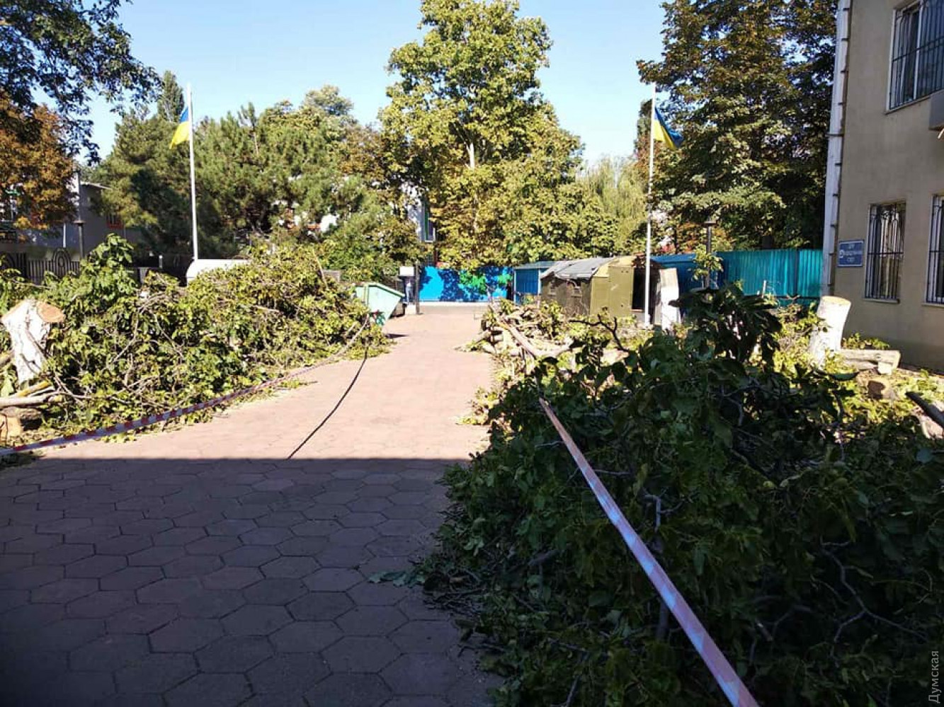 Это работники суда запросили все деревья спилить. Теперь удобная парковка будет для их дорогих машин, контролировать удобнее машины из окон, да и задницу быстрее перемещать из автомобильного кресла в судейское.