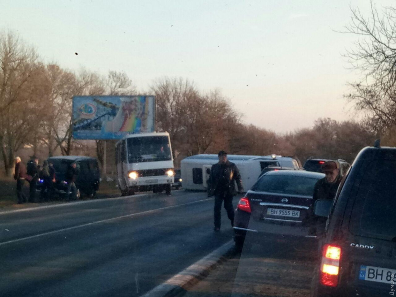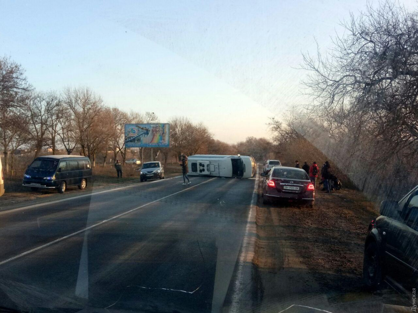 Сразу два пассажирских микроавтобуса «Мерседес Спринтер» перевернулись сегодня утром в разных местах Одесской области. Как сообщили «Думской» очевидцы, одно такое происшествие случилось на автодороге Одесса-Южный, за Фонтанкой. «Водитель выбивал лобовое ногами, чтобы вылезти из машины», — говорит свидетель ДТП. Еще один «Спринтер» перевернулся в самом Южном. Подробностей об этом происшествии пока нет. ОБНОВЛЕНО. В полиции утверждают, что автобус двигался без пассажиров и перевернулся из-за скользкой дороги. В это время на другой вызов двигалась группа сотрудников патрульной полиции, которые совместно с другими водителями сумели поставить автобус на колеса. Никто не пострадал, водитель автобуса в полицию не обращался и уехал своим ходом. СМЕРТЬ РОСІЙСЬКИМ ОКУПАНТАМ! Помітили помилку? Виділяйте слова з помилкою та натискайте control-enter Новини по цій темі: 30 серпня 2025: Машина вилетіла в кювет: мер Рені потрапив в аварію, його мати загинула, а маленький син у лікарні (фото) 18 серпня 2025: Троє загинули, один у лікарні: на трасі Одеса-Рені водій Mercedes не пропустив фуру (фото) 28 липня 2025: П'яний на "Ягуарі" або гіпертонік? Звільнений топ-посадовець одеської поліції хоче повернутися на службу 2 квітня 2025: В Одесі водій BMW спровокував аварію, в якій постраждали п`ятеро людей, і втік (фото, відео) |