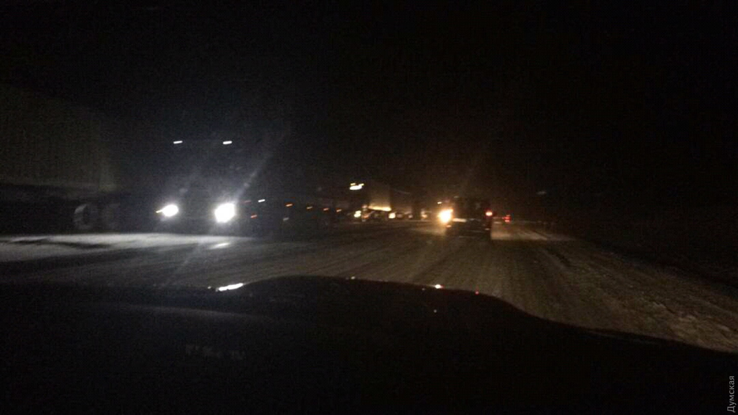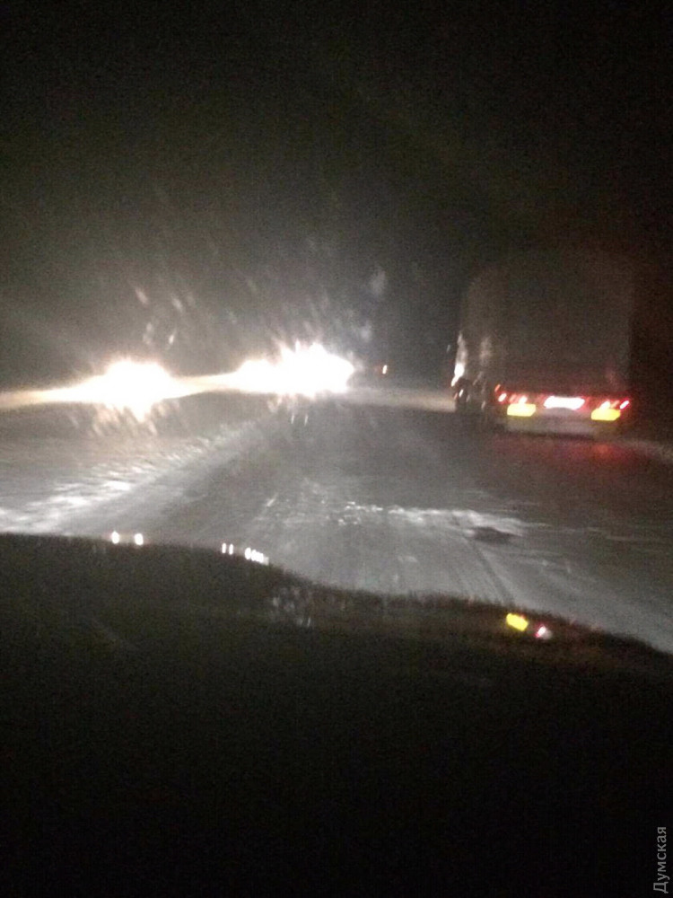 Гололед и снег покрыл сегодня дороги в области, в том числе немного замело трассу Одесса-Киев.