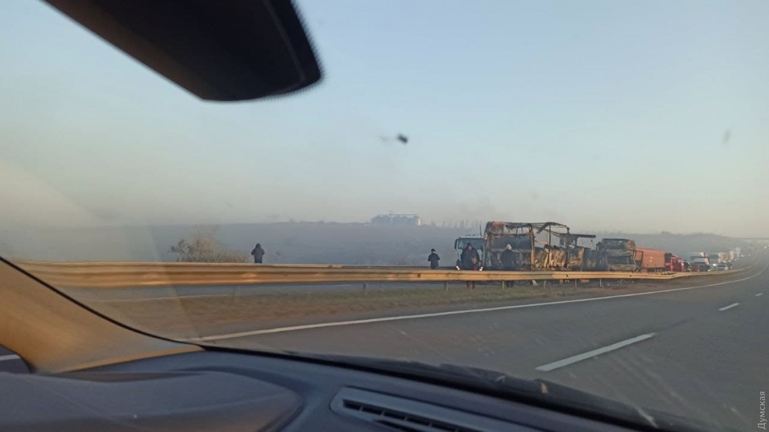 На трассе Одесса-Киев столкнулись пять автомобилей: есть погибшие и пострадавшие, движение заблокировано (обновлено, фото, видео)Автомобильное движение по трассе Одесса-Киев заблокировано из-за серьезного ДТП, которое случилось в районе Любашевки Одесской области (313 км). Как сообщили в пресс-службе ГУНП, примерно в 5 утра там столкнулись два грузовика и три легковых автомобиля. Погибло три человека, есть пострадавшие. Полиция просит водителей воздержаться от поездок в указанном направлении или выбрать альтернативный маршрут. В сторону Одессы объезд осуществляется по Старокиевской дороге. ОБНОВЛЕНО В 9:49. По данным «Думской», разбитые и сгоревшие машины по прежнему стоят на проезжей части. На месте ДТП продолжает работать полиция. В районе Любашевки на трассе собралась пробка в сторону Одессы. ОБНОВЛЕНО В 10:14. По данным полиции, были госпитализированы в Любашевскую райбольницу восемь пострадавших в ДТП. Среди них пятеро несовершеннолетних в возрасте 15-16 лет. У всех пострадавших политравмы, ушибы, переломы и рубленные раны. Количество погибших устанавливается. СМЕРТЬ РОСІЙСЬКИМ ОКУПАНТАМ! Помітили помилку? Виділяйте слова з помилкою та натискайте control-enter Новини по цій темі: 30 серпня 2025: Машина вилетіла в кювет: мер Рені потрапив в аварію, його мати загинула, а маленький син у лікарні (фото) 18 серпня 2025: Троє загинули, один у лікарні: на трасі Одеса-Рені водій Mercedes не пропустив фуру (фото) 28 липня 2025: П'яний на "Ягуарі" або гіпертонік? Звільнений топ-посадовець одеської поліції хоче повернутися на службу 2 квітня 2025: В Одесі водій BMW спровокував аварію, в якій постраждали п`ятеро людей, і втік (фото, відео) |
