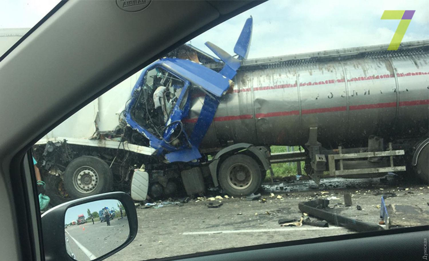 На трассе Одесса-Киев водитель цистерны протаранил прицеп и погиб