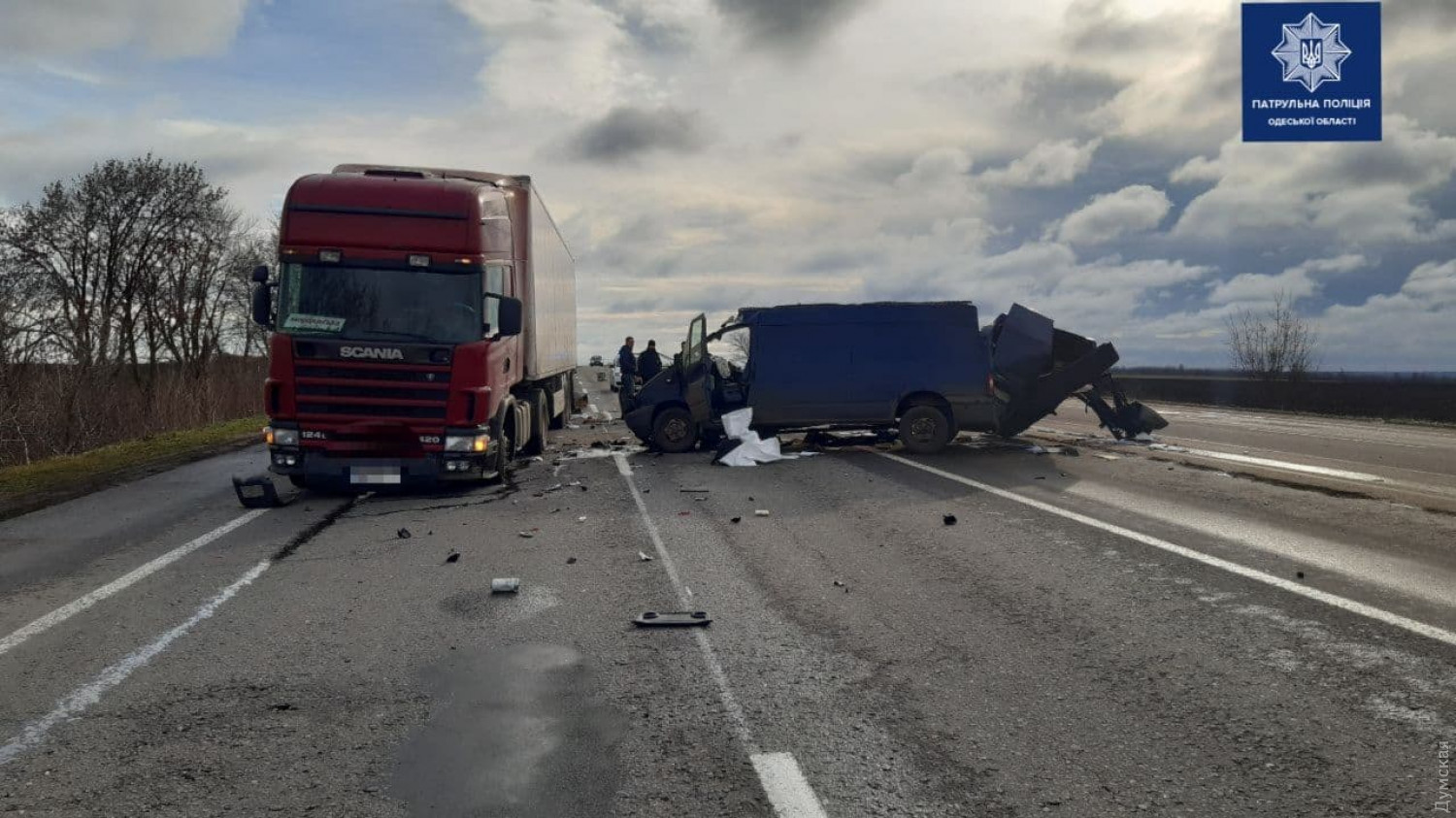 Серьезное ДТП случилось сегодня днем на 415-м километре трассы Одесса — Киев. Как сообщили в патрульной полиции Одесской области, примерно в 12:00 грузовой автофургон Ford Transit врезался в грузовик Scania с прицепом, водитель которого остановился в правой полосе и выставил знак аварийной остановки. «Форд» двигался по той же полосе и превысил скорость. Жертв и пострадавших нет. На виновника происшествия составили админпротокол по ст. 124 КУоАП. СМЕРТЬ РОСІЙСЬКИМ ОКУПАНТАМ! Помітили помилку? Виділяйте слова з помилкою та натискайте control-enter Новини по цій темі: 30 серпня 2025: Машина вилетіла в кювет: мер Рені потрапив в аварію, його мати загинула, а маленький син у лікарні (фото) 18 серпня 2025: Троє загинули, один у лікарні: на трасі Одеса-Рені водій Mercedes не пропустив фуру (фото) 12 серпня 2025: Як у кіно: в Одесі затримали драгдилера з партією психотропів на 20 мільйонів (фото) 4 серпня 2025: Експертизу не зробили, камери не подивилися: одеські волонтери скаржаться на саботаж поліції у розслідуванні вбивства собаки |