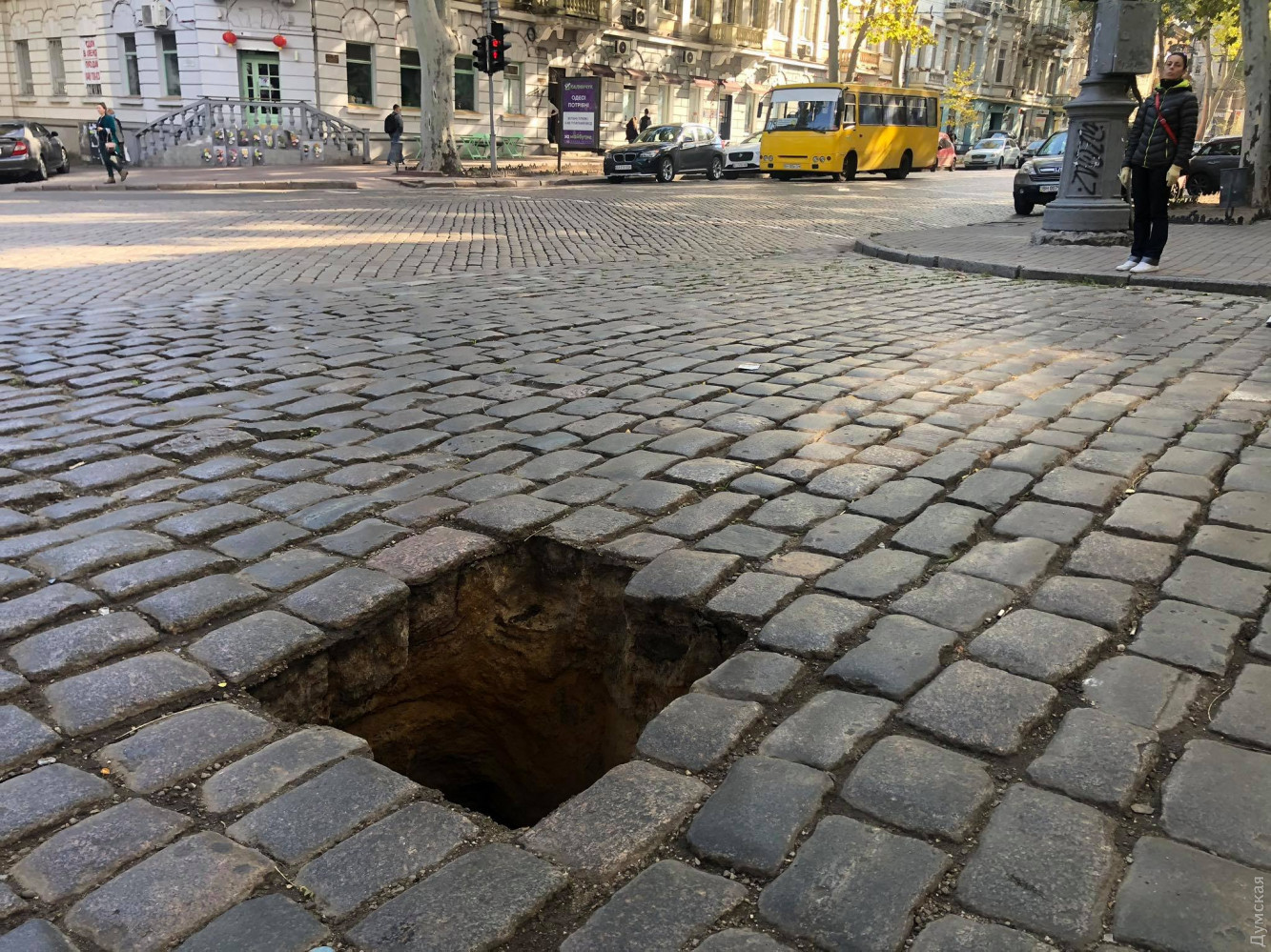 На многострадальном перекрестке Пушкинской и Еврейской снова образовался провал. Как передает корреспондент «Думской», коммунальщики обозначили его зеленой веткой — чтобы ненароком никто не въехал. Судя по всему, как и в прошлые разы, всему виной — текущая труба. СМЕРТЬ РОСІЙСЬКИМ ОКУПАНТАМ! Помітили помилку? Виділяйте слова з помилкою та натискайте control-enter Новини по цій темі: 9 квітня 2024: Руйнування набережної, тріщини в схилах, зате чиста вода: як Одеса до курортного сезону готується (фото) 19 травня 2023: На просідаючому узвозі в центрі Одеси почалася геологічна розвідка: спецтехніка пробурила кілька свердловин 1 березня 2023: Мегапровал на одеських Черемушках нарешті ліквідовано (фото) |