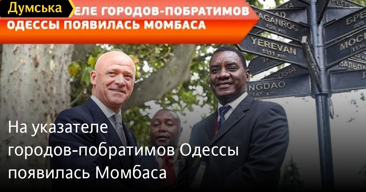На указателе городов-побратимов появилась африканская Момбаса. Это второй по величине город в Кении. В этом году Одесса и Момбаса подписали соглашение о сотрудничестве в сфере экономики, туризма, образования и культуры.