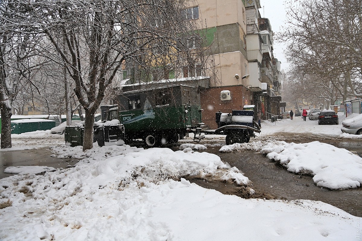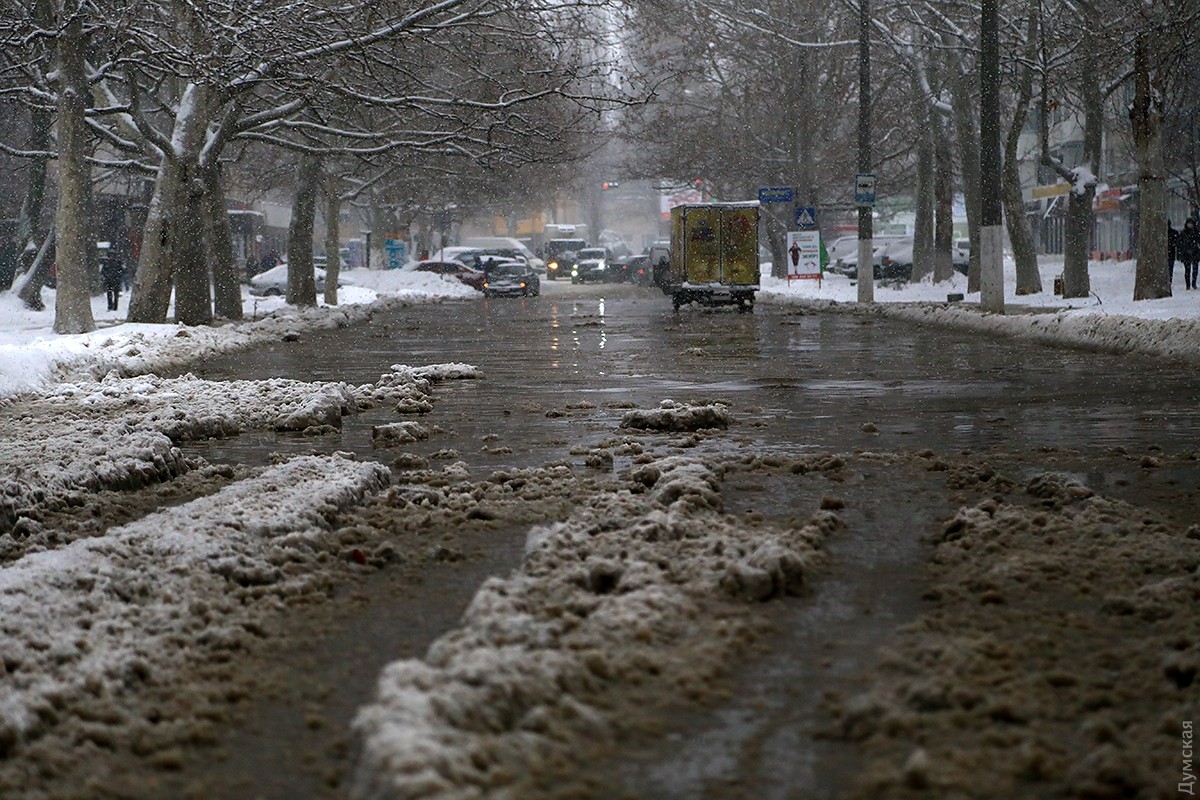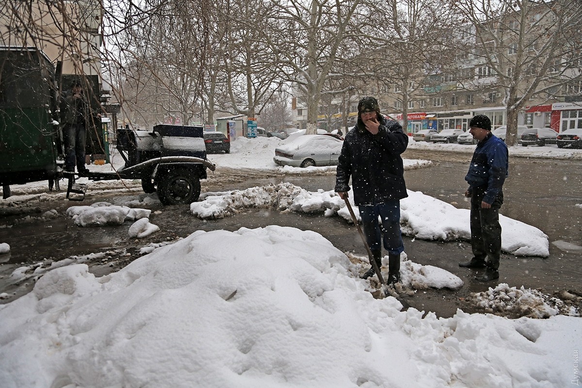 Подтопленной оказалась вся Варненская от Филатова до Терешковой. Как сообщает корреспондент «Думской», в 11 часов ремонтная бригада еще не нашла колодец, чтобы перекрыть воду. Поискам мешал слой снега. Никаких планов коммуникаций у рабочих не было — они выстукивали ломом по асфальту в поисках нужного металлического звука.