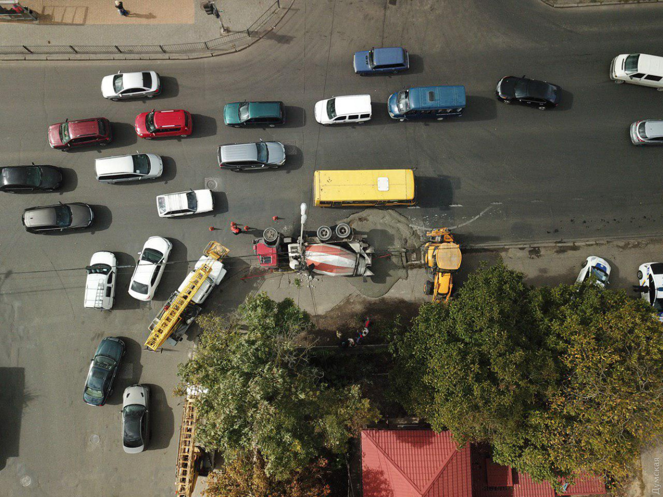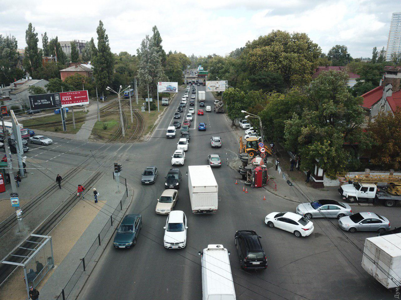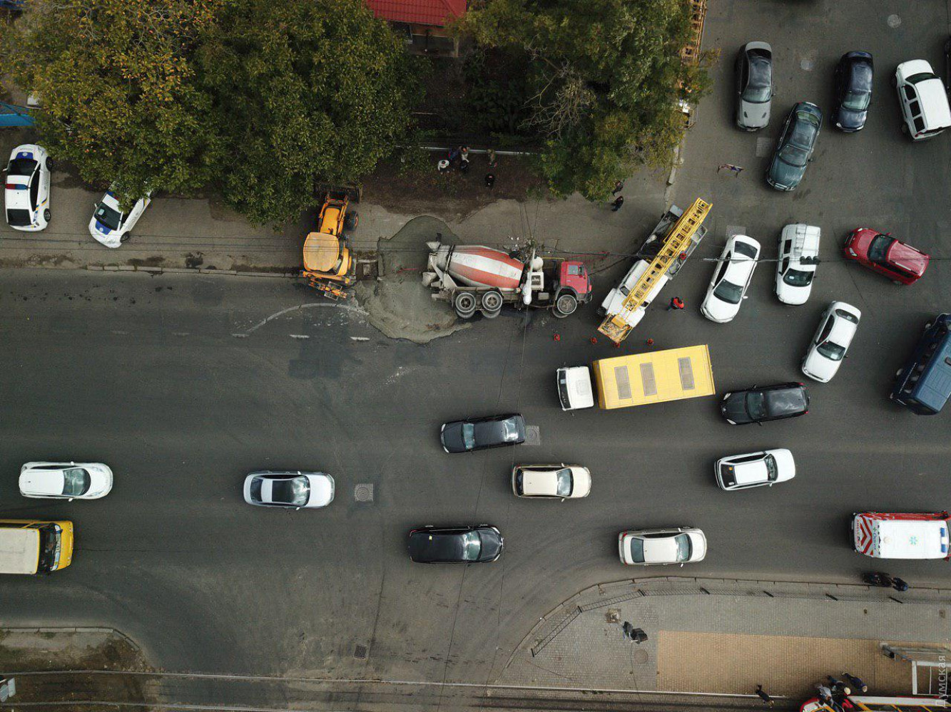 На Люстдорфской дороге перевернулась бетономешалка — бетон вылился на проезжую часть (обновлено, фото)