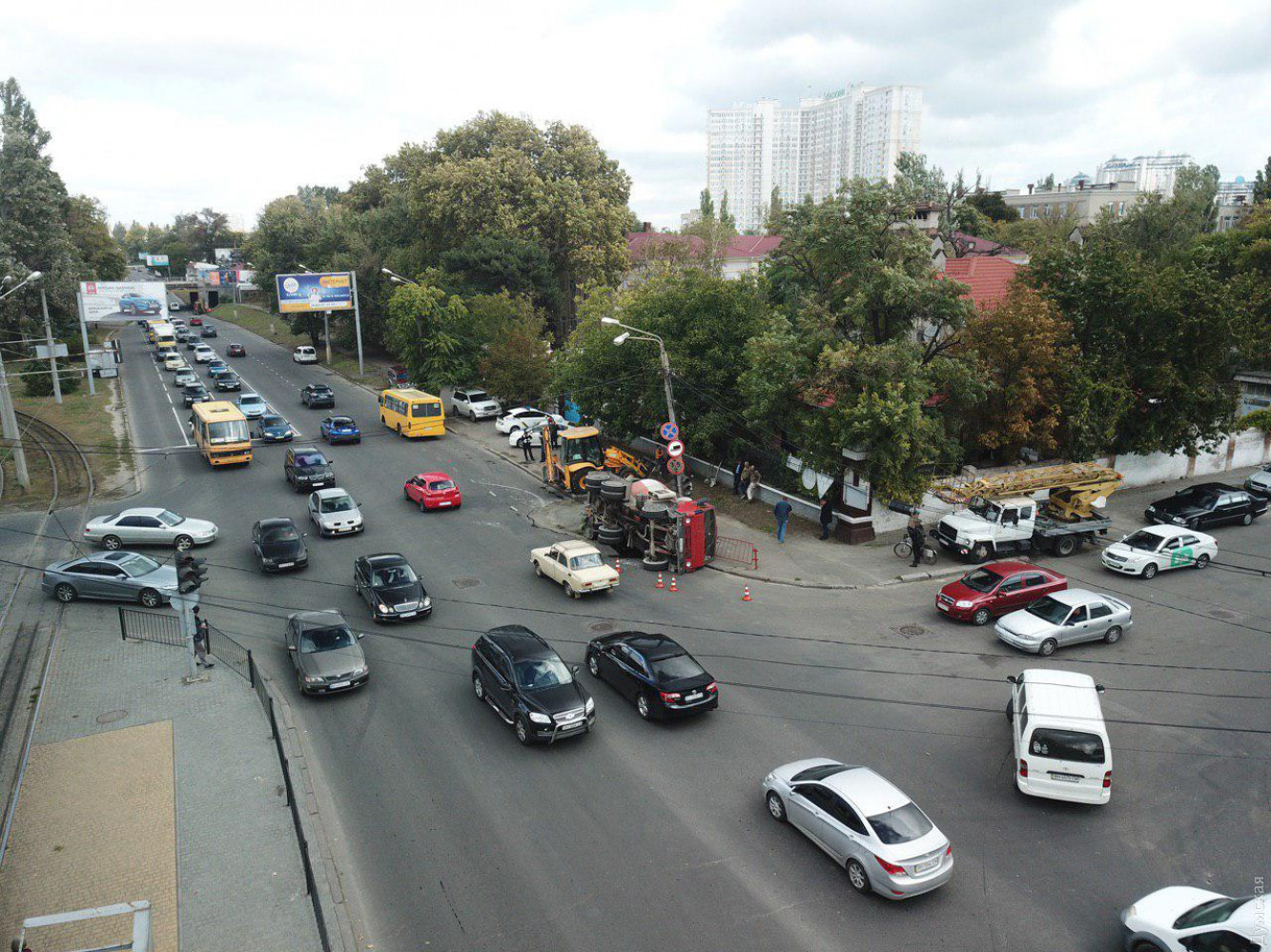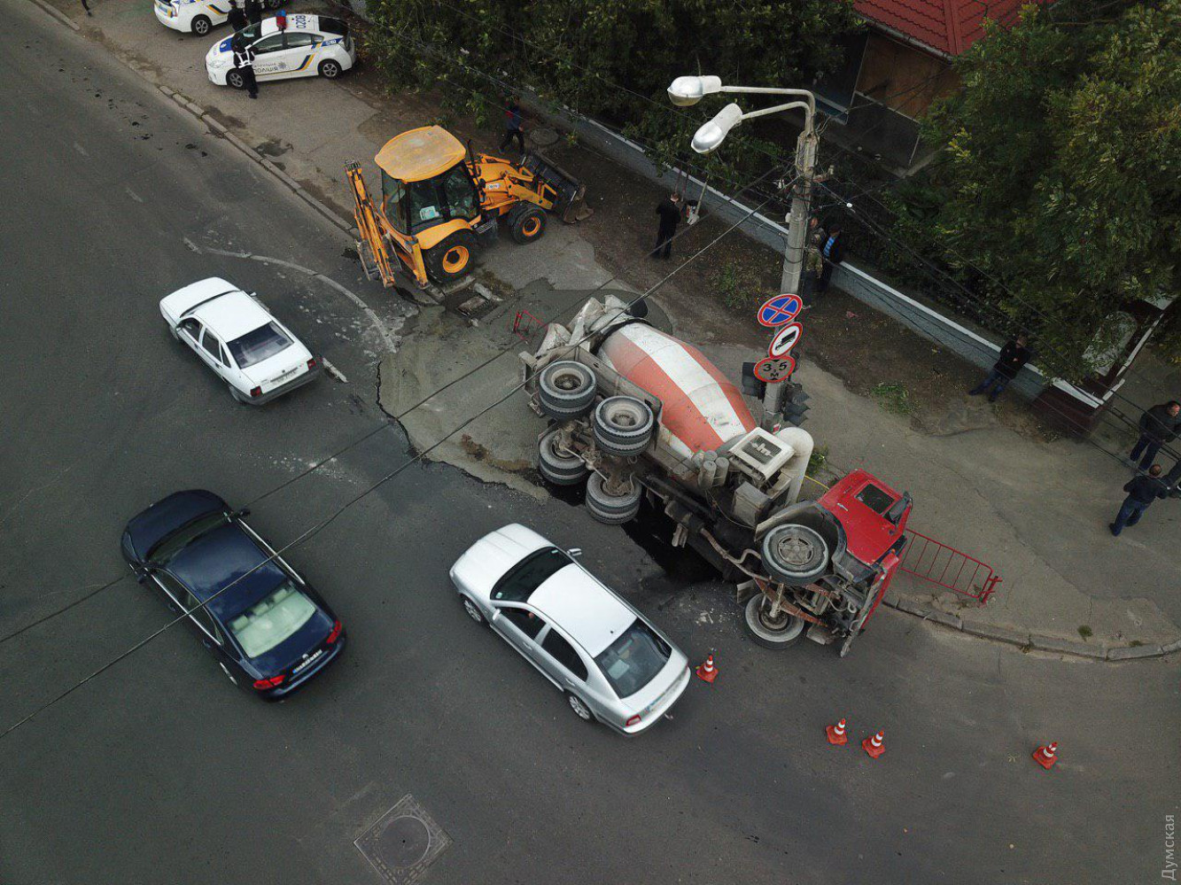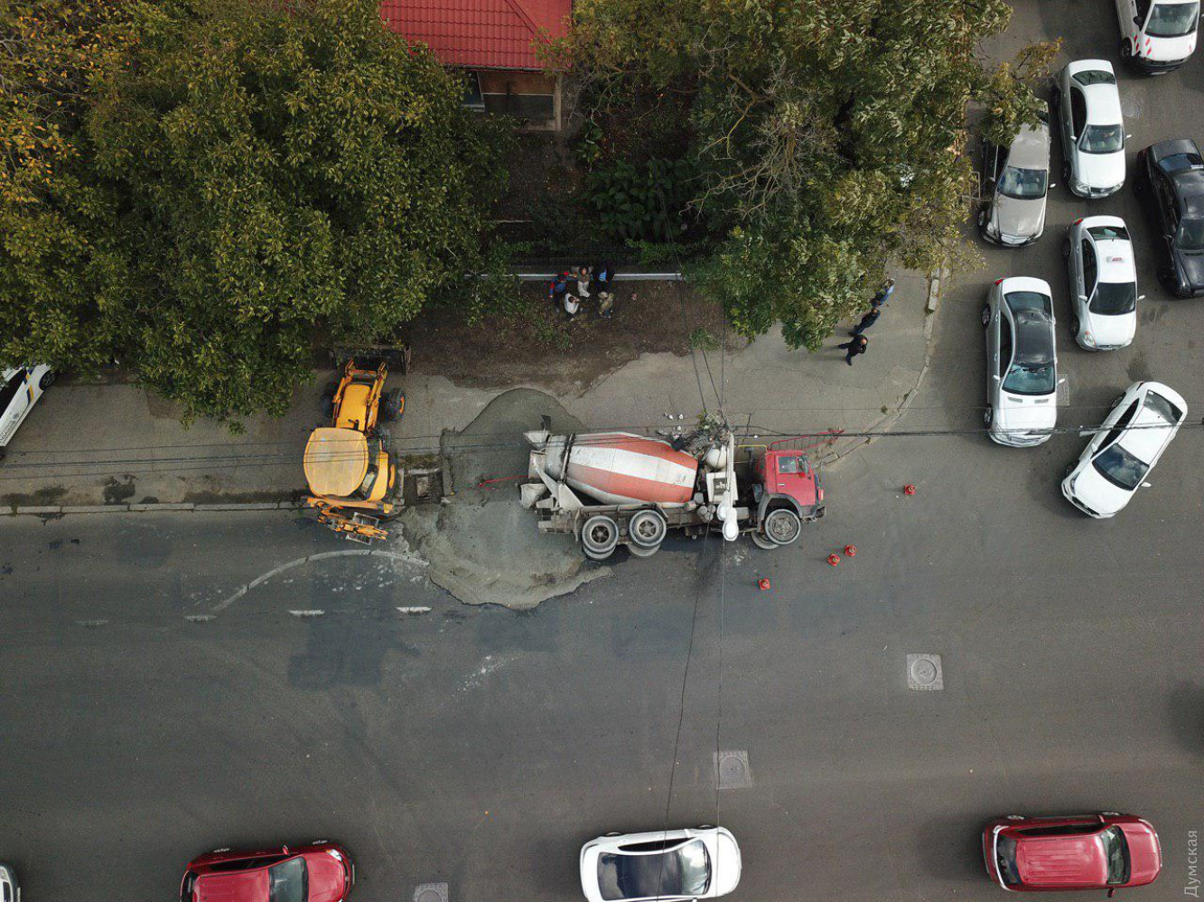 На Люстдорфской дороге перевернулась бетономешалка — бетон вылился на проезжую часть (обновлено, фото)