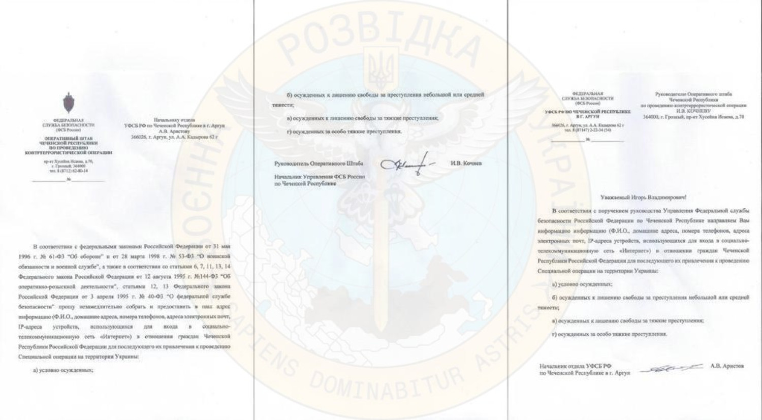 На войну в Украину рф отправляет чеченских заключенных, в том числе родственников оппозиционеров, — разведкаЧеченский филиал ФСБ собирает информацию о заключенных местных тюрем для их дальнейшей отправки в зону боевых действий в Украине. Переписку должностных лиц ФСБ обнародовало Главное управление разведки Министерства обороны Украины. В письмах речь идет о необходимости предоставить личные данные осужденных, в частности: ФИО, домашние адреса, номера телефонов, адреса электронных почт, IP-адреса устройств, используемых для входа в «социально телекоммуникационную сеть Интернет». «Немедленно собрать и предоставить в наш адрес информацию о гражданах Чеченской республики РФ для дальнейшего их привлечения к проведению специальной операции на территории Украины: а) условно осужденных; б) осужденных к лишению свободы за преступления небольшой и средней тяжести; в) осужденных к лишению свободы за тяжкие преступления; г) осужденных за особо тяжкие преступления», — говорится в одном из документов. По словам чеченских оппозиционных общественных деятелей, такие действия имеют две цели. Во-первых, восполнить «человеческий ресурс» частей, понесших значительные потери в боях с украинскими защитниками. Во-вторых, подавить любые протестные настроения в Чечне. Ведь сейчас там распространена практика осуждения родственников оппозиционеров. Теперь им грозит принудительная отправка в самые горячие точки фронта. В частности, брата известного чеченского оппозиционера Хасана Халитова уже доставили в одну из частей на передовой. Других родственников Халитова похитили и их местонахождение неизвестно. СМЕРТЬ РОСІЙСЬКИМ ОКУПАНТАМ! Помітили помилку? Виділяйте слова з помилкою та натискайте control-enter |