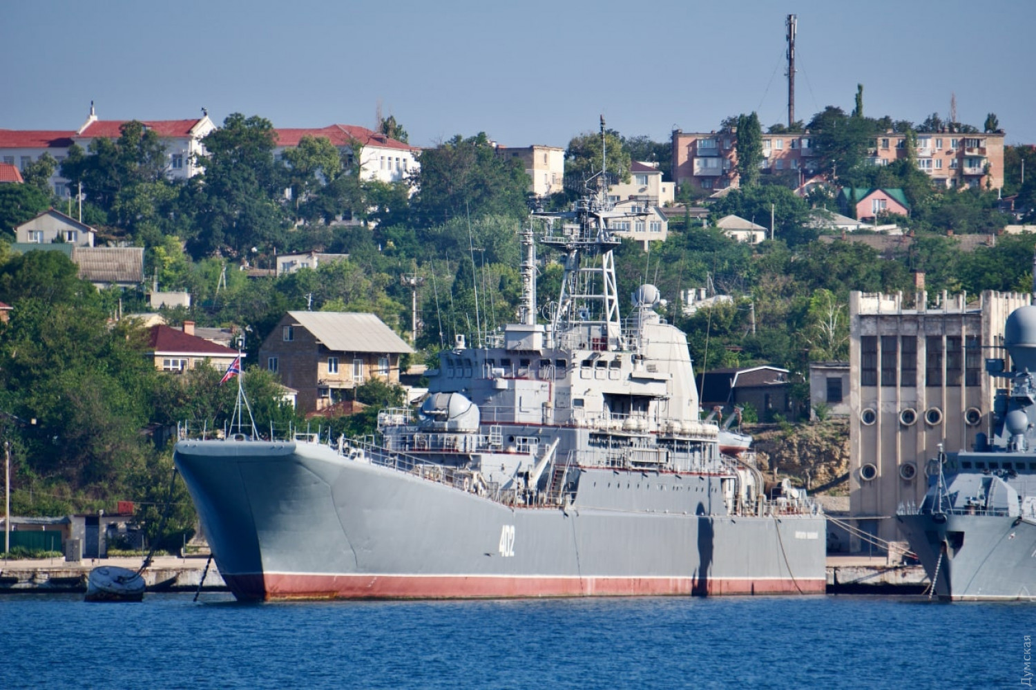такой же номер у него был и в 2014. «Большой десантный корабль «Константин Ольшанский» (U 402). Командир (по состоянию на 2014 год): капитан 2 ранга Дмитрий Коваленко. Численность экипажа: 107 человек, в том числе 13 офицеров. На сторону России во время событий в марте 2014 года перешли примерно полтора десятка членов экипажа. Оборону держали около 20 украинских моряков, в том числе военнослужащие 5-й бригады надводных кораблей.»