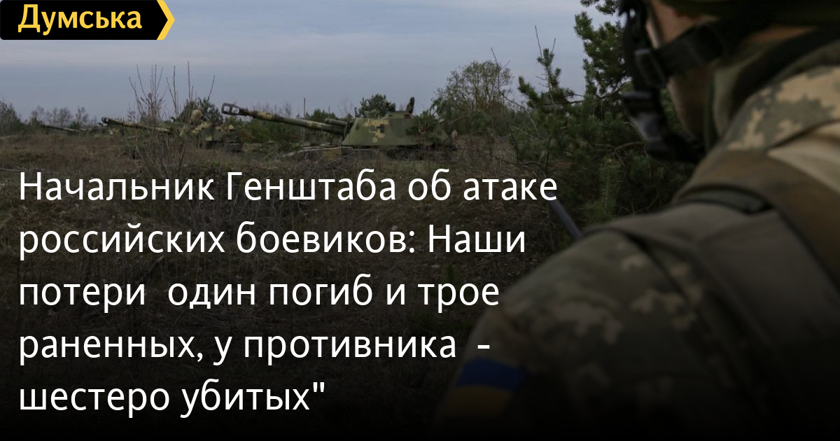 Начальник Генштаба об атаке российских боевиков: «Наши потери – один погиб и трое раненных, у противника - шестеро убитых»После утреннего нападения вооруженных формирований Российской Федерации на украинские позиции вблизи населенных пунктов Новотошковское, Орехово, Крымское, Хутор Вольный,начальник Генштаба Руслан Хомчак и секретарь СНБО Алексей Данилов провели совместный брифинг. Хомчак рассказал, что с 10 утра противник запросил режим тишины, чтобы забрать убитых и раненых. «Наши потери — один погибший, трое раненых и двое контуженных. Потери противника — четверо убитыми и шестеро раненых. Сейчас ситуация стабильна, огонь прекратился», — отметил начальник Генштаба. Подробнее о чем шла речь на брифинге, смотрите в видео. СМЕРТЬ РОССИЙСКИМ ОККУПАНТАМ! Заметили ошибку? Выделяйте слова с ошибкой и нажимайте control-enter |
