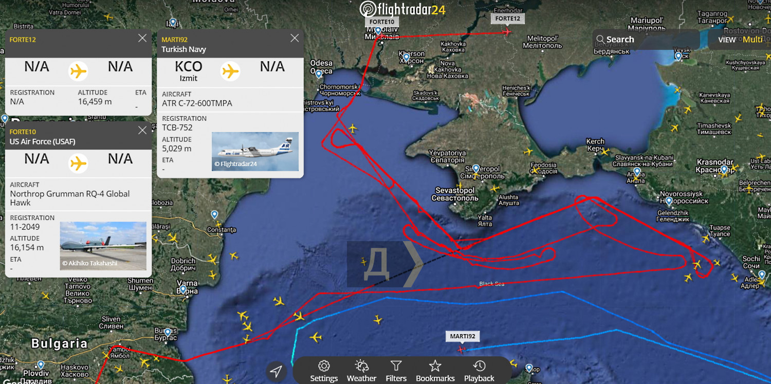 Над Черным морем и Донбассом проводят разведку сразу два «Глобал Хоука», «Посейдон» и турецкий патрульный самолетСегодня утром в разведывательный полет над Черным морем с американской авиабазы Сигонелла, что на итальянском острове Сицилия, отправились сразу два американских стратегических беспилотных разведчика RQ-4 Global Hawk. Впервые над нашим регионом работают сразу два разведчика этого типа. Чуть позже над центральной частью Черноморского бассейна появился новейший турецкий патрульный и противолодочный самолет ATR 72-600 TMPA. Еще через два часа в районе Севастополя стал нарезать круги американский противолодочный P-8A Poseidon. Напомним, американские партнеры внимательно следят за концентрацией сил и средств оккупантов, предоставляя украинскому Генеральному штабу ценную информацию. СМЕРТЬ РОСІЙСЬКИМ ОКУПАНТАМ! Помітили помилку? Виділяйте слова з помилкою та натискайте control-enter |