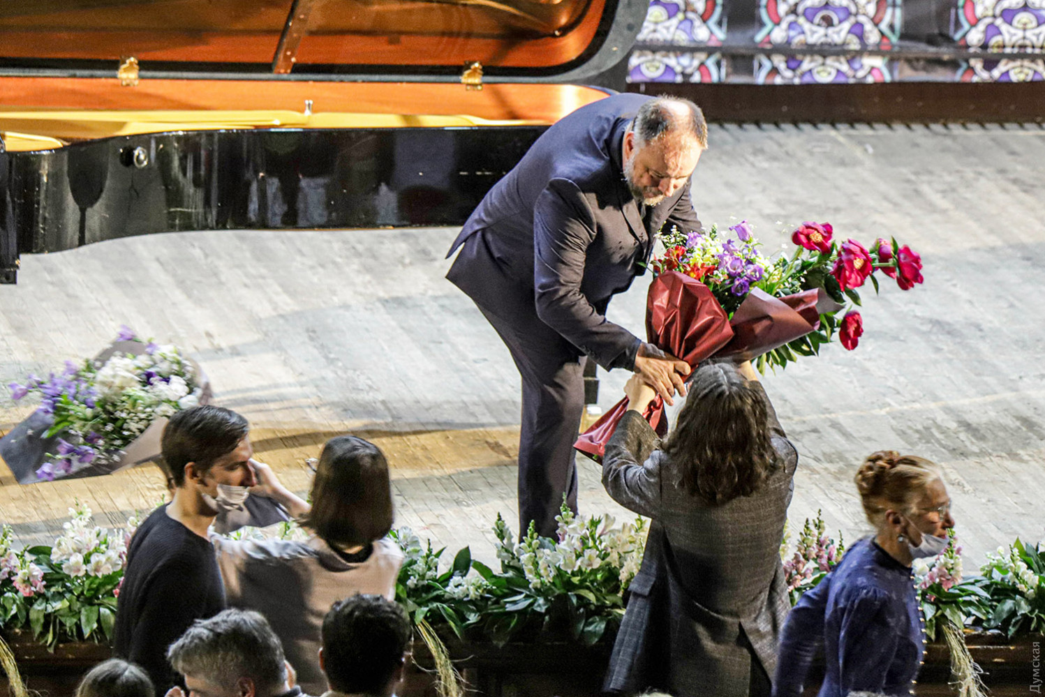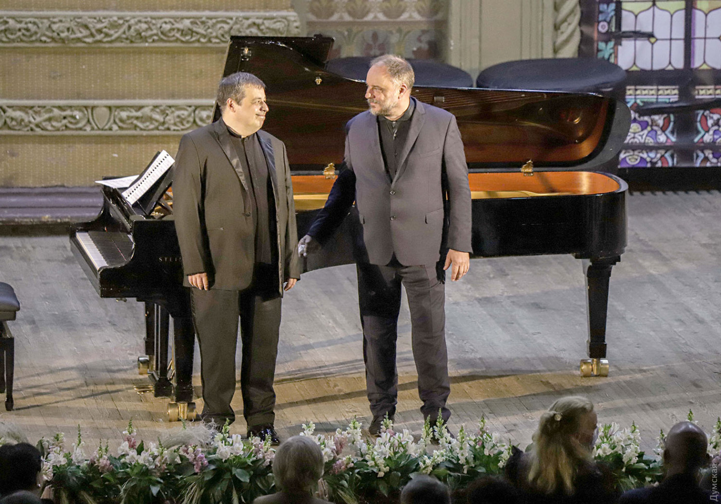 Маттиас Гёрне максимально сосредотачивается на исполнении (поэтому его раздражают любые активности в зале во время концерта), у него голос потрясающего диапазона, легкость и точность пения необыкновенные, и словно воочию видишь перед собой юношу с разбитым сердцем, отвергнутого богатой возлюбленной… Das Mädchen sprach von Liebe, Die Mutter gar von Eh' («Девушка говорила о любви, мать – даже о браке»), но конец всем надеждам, и сон о весеннем дне прерывается криком ворона… Популярность «венка ужасных песен», как называл цикл сам автор, заключается еще и в том, что с отчаявшимся героем отождествляют себя творческие люди, не приживающиеся в мире торгашей. Сам Маттиас Гёрне исполнял «Зимний путь» даже в формате концерта-спектакля, но и без малейших сценических эффектов, только с сопровождением рояля, певец производит ошеломляющее впечатление. К концу концерта слезы навернулись на глаза у доброй части зала. Важное уточнение: поскольку прогноз погоды на понедельник неутешительный, вполне возможно, что вечер музыки и литературы с участием писателя Михаила Шишкина и Алексея Ботвинова может быть перенесен из Зеленого театра в филармонию. Окончательное решение организаторов будет в течение дня опубликовано на сайте фестиваля и в соцсетях. Автор — Ирэн Адлер, фото Владимира Андреева СМЕРТЬ РОСІЙСЬКИМ ОКУПАНТАМ! Помітили помилку? Виділяйте слова з помилкою та натискайте control-enter