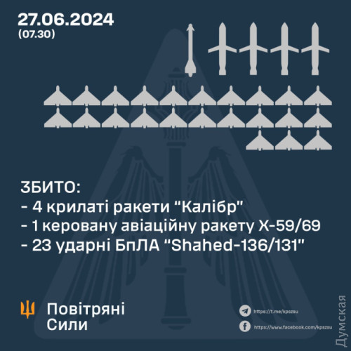 28 повітряних цілей збили над Україною вночі 27 червня.