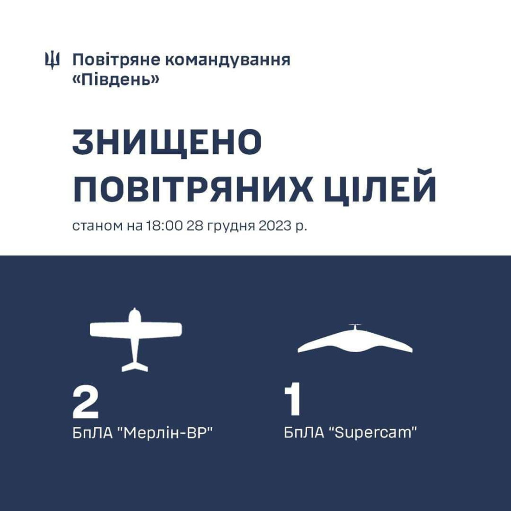 Три ворожі розвідувальні безпілотники збили Сили оборони над південними областями 28 грудня. Про це повідомило повітряне командування «Південь». Безпілотні літальні апарати «Мерлін-ВР» і Supercam знищили українські захисники над Херсонською областю, ще один «Мерлін-ВР» — над Миколаївською. СМЕРТЬ РОСІЙСЬКИМ ОКУПАНТАМ! Помітили помилку? Виділяйте слова з помилкою та натискайте control-enter |