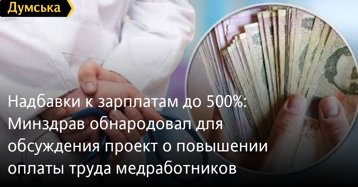 Надбавки к зарплатам до 500%: Минздрав обнародовал для обсуждения проект о повышении оплаты труда медработниковПроект постановления Кабинета министров Украины о повышении оплаты труда медработников опубликовал Минздрав для общественного обсуждения. Как сообщает пресс-служба МОЗ, документ предусматривает надбавку на 2022 год за престижность труда медицинским работникам. Так, врачам и профессионалам с высшим немедицинским образованием, допущенным к медицинской деятельности в учреждениях здравоохранения предлагают выплачивать надбавку до 500 %. Специалистам с базовым высшим медицинским образованием и неполным высшим медицинским образованием — до 300 %. Речь идет о тех сотрудниках медицинской сферы, которые работают в учреждениях, организациях и предприятиях бюджетной сферы, финансируемых или дотируемых из бюджета Кабмином. «Конкретный размер надбавки за престижность труда медицинского работника в 2022 г. предлагается определять руководителю соответствующего учреждения, учреждения, организации и предприятия», — сообщают в МОЗ. Сообщается, что данное постановление позволит врачам получать зарплату не менее 20 тыс. гривен, а специалистам с базовым высшим медицинским образованием и неполным высшим медицинским образованием — не менее 13 500 гривен. СМЕРТЬ РОССИЙСКИМ ОККУПАНТАМ! Заметили ошибку? Выделяйте слова с ошибкой и нажимайте control-enter |