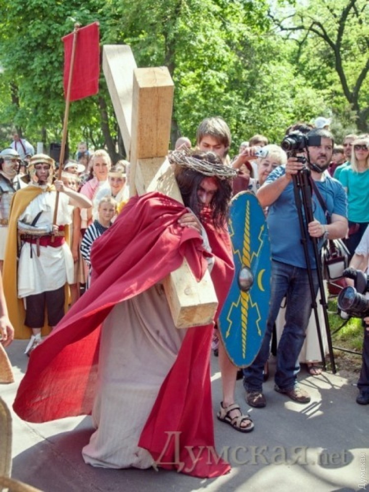 В нынешнем году накануне Пасхи в Одессе снова планируют провести реконструкцию библейских событий, произошедших две тысячи лет назад. Постановку проведут в сквере Гамова в Страстную пятницу, 29 апреля. Об этом на пресс-конференции сообщил вице-президент благотворительного фонда «Добрый самарянин» Денис Сердюченко. «Многие люди пекут паски, красят яйца, но не знают, что произошло на самом деле. В форме постановки мы покажем суд над Христом, шествие и распятие Христа», — отметил Денис Сердюченко. Это будет уже четвертая пасхальная реконструкция в Одессе. По словам вице-президента фонда, в минувшем году участниками действа стали около 200 человек, в нынешнем ожидается около 400. СМЕРТЬ РОСІЙСЬКИМ ОКУПАНТАМ! Помітили помилку? Виділяйте слова з помилкою та натискайте control-enter |