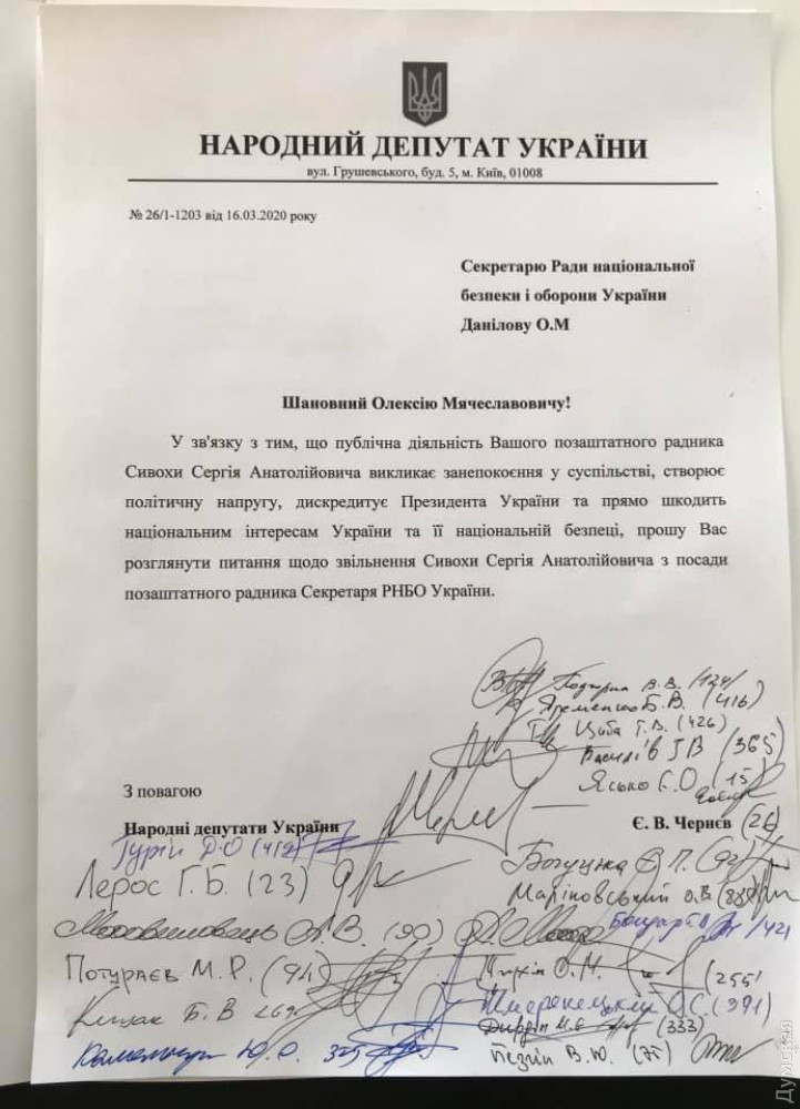 Народные депутаты Украины подготовили обращение к секретарю Совета национальной безопасности и обороны Алексею Данилову с просьбой уволить его советника Сергея Сивохо. Об этом сообщила «Украинская правда» со ссылкой на источник в ВР. «Публичная деятельность Сивохо вызывает беспокойство в обществе, создает публичное напряжение, дискредитирует президента и вредит национальным интересам Украины», — говорится в обращении. Инициатором обращения стал нардеп от «Слуги народа» Егор Чернев. Под документом подписались более 20 народных депутатов. Напомним, скандал с участием Сергея Сивохо разгорелся 12 марта во время его презентации Национальной платформы примирения и единства. Присутствовавшие на мероприятии представители националистических организаций устроили словесную перепалку с ним, которая позднее переросла в стычку. В тот же день Алексей Данилов заявил, что Сивохо – это только один из его 11 внештатных советников, и никто не давал ему официальных полномочий представлять позицию СНБО. СМЕРТЬ РОСІЙСЬКИМ ОКУПАНТАМ! Помітили помилку? Виділяйте слова з помилкою та натискайте control-enter |
