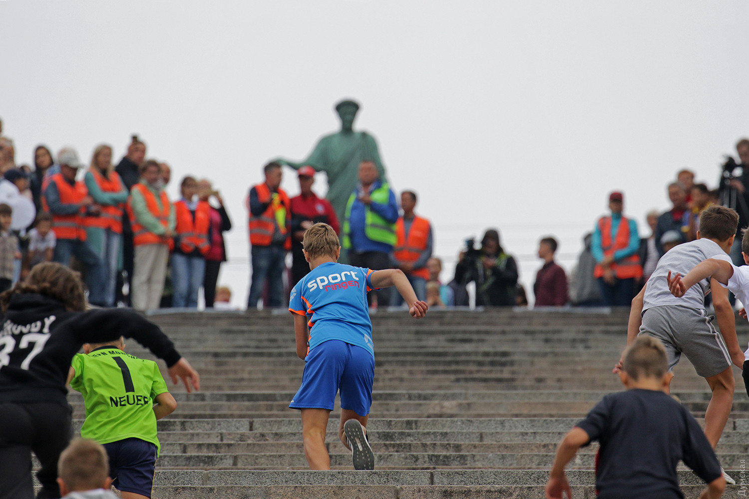 Сегодня на Приморском бульваре проходит масштабный спортивный праздник, ключевым событием которого стал традиционный забег по Потемкинской лестнице. Как передает корреспондент «Думской», в рамках Дня физкультуры и спорта на импровизированных площадках возле Дюка показывали свое мастерство боксеры и футболисты, баскетболисты и тяжелоатлеты, шпажисты и каратисты. Но в самом ожидаемом забеге вверх по Потемкинской приняли участие более 500 бегунов в разных возрастных категориях. Дистанция забега в 142 метра состоит из 192 ступеней главной лестницы города. Мужской рекорд ее преодоления составляет 24,6 секунд, женский — 29,2. Среди девушек старшего возраста участвовала также трехкратная чемпионка Украины в барьерном беге на 100 метров Наталия Забродская, которая одержала победу в своей номинации. Второй пришла неоднократная чемпионка страны по прыжкам с шестом Маргарита Кривко. Девушки признались, что уже давно ушли из большого спорта, но стараются не пропускать традиционные забеги по Потемкинской. «Я уже в четвертый раз бегу по лестнице. — рассказывает Наталия. — В прошлом году пришлось пропустить забег из-за беременности, но я стараюсь не терять форму — тренируюсь, поэтому пришла сегодня поучаствовать». К забегу присоединился и народный депутат Украины Алексей Гончаренко. Он пришел на соревнования с сыном. «Мне как президенту областной Федерации легкой атлетики очень приятно, что в сегодняшних забегах участвуют все возрастные категории, как говорится, от мала до велика. Я всегда поддерживаю такие мероприятия. Нужно, чтобы их было как можно больше. В забеге по Потемкинской лестнице я бегу впервые, думаю сделать это традицией», — отметил он. Всего по Потемкинской сегодня пробежали более 30 групп спортсменов. Побить рекорды, к сожалению, никому не удалось. Последним поднялся жонглер-любитель из Черноморска, который по время своего шуточного забега жонглировал тремя теннисными мячами. Фото Сергея Смоленцева СМЕРТЬ РОСІЙСЬКИМ ОКУПАНТАМ! Помітили помилку? Виділяйте слова з помилкою та натискайте control-enter |