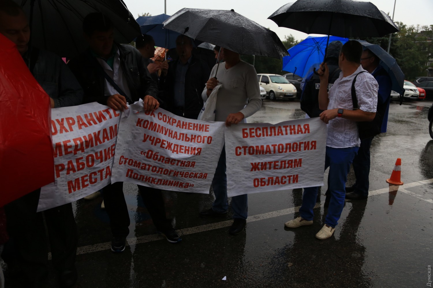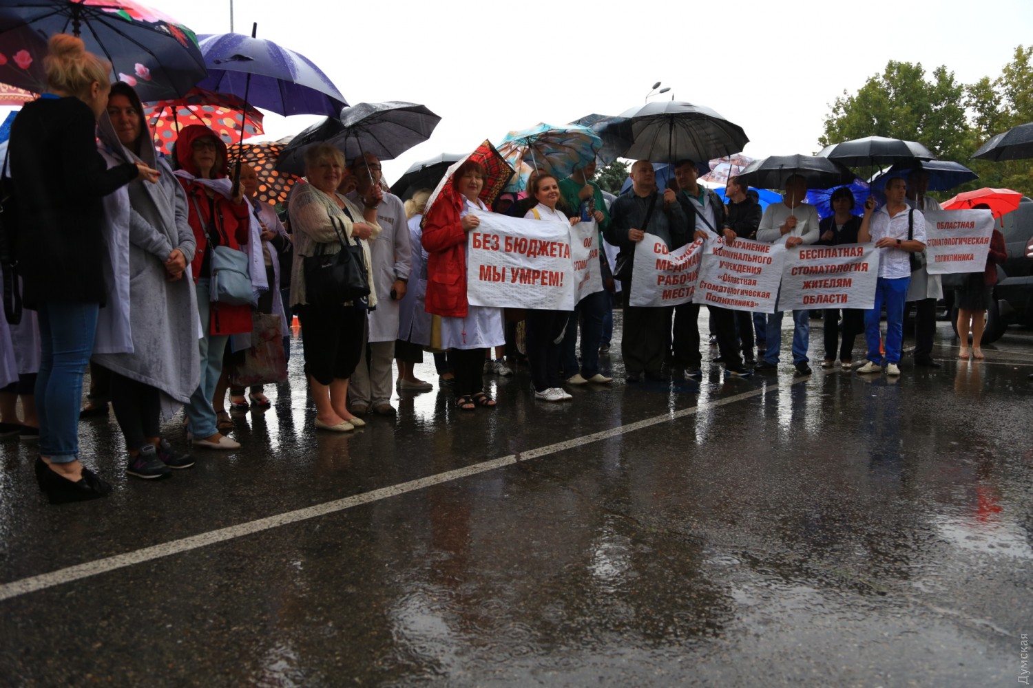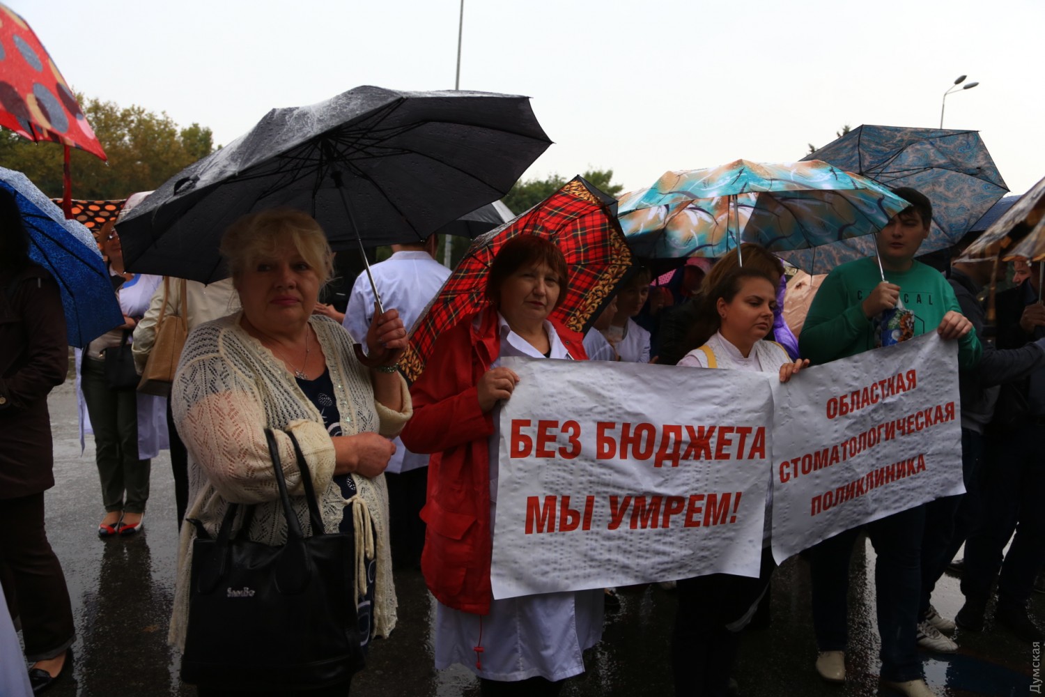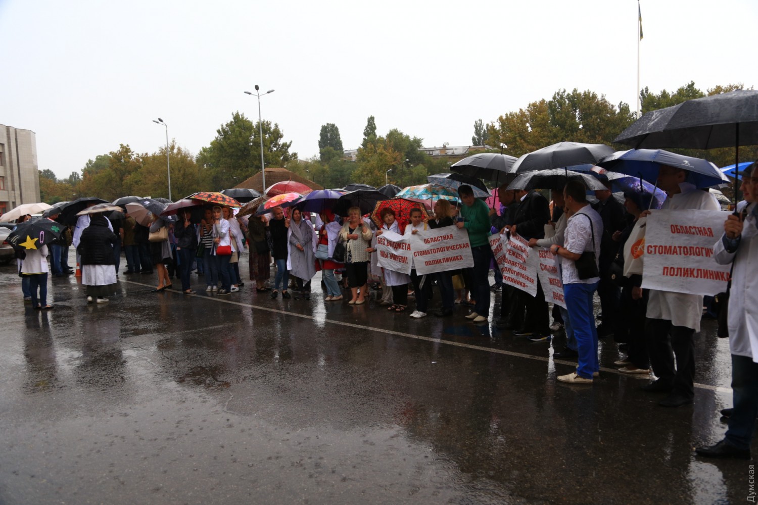 Как передает корреспондент «Думской», в акции участвуют около 70 человек. Часть из них - работники областной стоматологической поликлиники, которые требуют от депутатов сохранить бюджетное финансирование. Остальные — представители Одесского областного госпиталя инвалидов ВОВ и Одесского областного глазного госпиталя инвалидов ВОВ, которые выступают против реорганизации и объединения двух медучреждений.