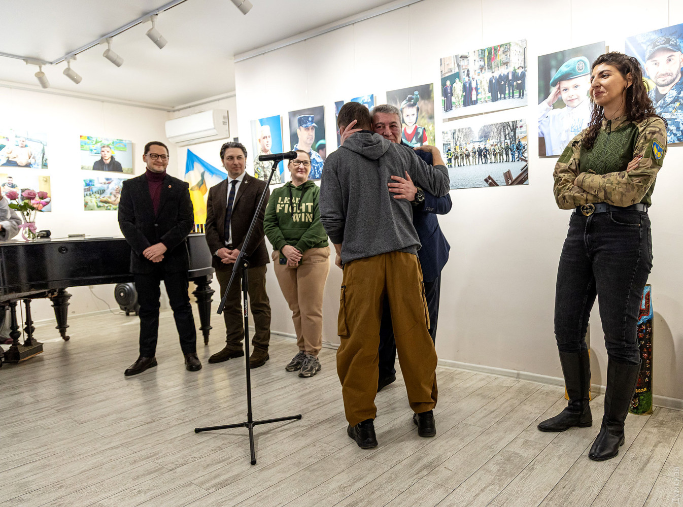 Фотовиставка Бориса Бухмана «Народжені на перемогу», присвячена річниці початку повномасштабної війни в Україні, відкрилася в галереї ArtOdessa Літнього театру в Міськсаду. Експозиція складається з десятків портретів наших захисників. Перед нами розкривається багатогранний колективний образ українського військового: від солдата до генерала, від зрілого чоловіка до молодої жінки з тендітним букетом польових квітів у руках. Серед робіт є портрети загиблих героїв, а також їхніх дітей — як символи продовження життя та надії на світле майбутнє. «Таке враження, що те саме 24 лютого у нас досі триває, — сказав Борис Наумович. – Завдяки нашим громадським організаціям, нашим волонтерам відбулася ця експозиція. Хочу, щоб ви пам’ятали цих простих людей. До нас на виставку завітали люди, які у мене є на портретах. Тут є фотографії, зроблені в перші дні війни, одна з них була на білбордах по всій Одесі. Коли я їздив з іноземними кореспондентами, вони не могли зрозуміти, що я робив це безкоштовно, вважали мене багатим». Географія виставки охоплює Південь та Схід — від Одеси до Донеччини. Автор проявив себе неабияким портретистом, кожне обличчя подане так, що очей не відвести, загальне враження: захват. «Борис Бухман створював цю експозицію з метою підкреслити незламний дух українців, які попри все вірять у перемогу світла. І це світло ми бачимо у кожній світлині, адже навіть у найважчі часи ми залишаємося людяними і віримо у те, що справедливість обов'язково переможе», — підкреслила директор галереї Катерина Піменова. «Те, що сьогодні відбувається в нашій державі, кожного одесита змушує задуматися, — наголосив на вернісажі заступник одеського міського голови Павло Вугельман. – Змушує пережити дуже великі втрати, яких зазнали в багатьох родинах. Ще три роки тому невеличка ділянка на кладовищі , перші прапори на честь загиблих героїв, а сьогодні це вже безліч могил, перед якими ми вклоняємо голови у нашій вдячності, молимося за упокій кожної душі. Завдяки їм наші діти сьогодні можуть відвідувати садочки та школи. Хочу подякувати Борису Наумовичу, чи то як ми його називаємо, дяді Борі, просто Борису, за те, що в своїй творчості він в нашій з вами пам’яті залишає назавжди ці світлини, як символ мужності наших героїв, наших захисників. Ми впевнені, що війна закінчиться, а ваші, Борисе, світлини, залишаться як символ нашої незламності». На виставці представлені два блоки марок, підготовлені Укрпоштою, а також гільзи, розмальовані художниками, аматорами, студентами «худграфу» та учнями художньої школи імені Костанді. Усі гроші від продажів марок та гільз йдуть на закупівлю дронів для «Сталевого Кордону».