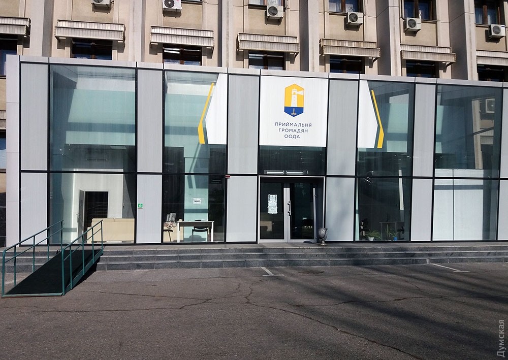 После визита в ЦОГ мы решили посетить и прозрачную общественную приемную, которая примыкает к зданию ОГА. Если раньше здесь толпились люди в ожидании встречи с губернатором, то теперь тут пустынно. В современном, недешево обставленном офисе скучают два сотрудника. Мы планировали записаться на прием к временно исполняющей обязанности губернатора Одесской области Соломии Бобровской. Но тщетно. Нам объяснили, что Бобровская в этой приемной не встречается с гражданами и дали номер телефона ее кабинета в здании ОГА.