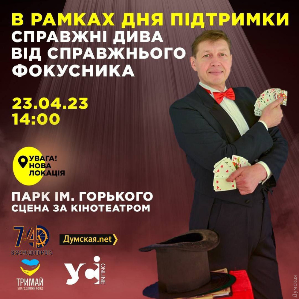 Справжні дива від фокусника, обмін книгами та іграшками й допомога тим, кому вона потрібна: одеситів запрошують на День підтримкиДень підтримки від благодійного фонду «Тримай» відбудеться 23 квітня в парку Горького. Організатори запрошують всіх одеситів, хто хоче гарно провести час, допомогти армії, взяти участь у цікавих проєктах, приєднатися до цієї події. Гостей чекатимуть справжні дива від фантастичного фокусника Олександра Яременко. Ба більше, глядачі зможуть самі взяти участь у чаклуванні. А обласний центр фізичного здоров'я населення ''Спорт для всіх» підготував веселе спортивне свято для всієї родини. Окрім розваг, під час заходу відбудеться роздача продуктових наборів і засобів гігієни переселенцям (за попередньою реєстрацією у чаті 7:40), а також каші, суміші, смачненькі пасочки для дітей, які втекли від війни (після реєстрації для ВПО). Кожен, хто хоче не тільки гарно провести час, а ще й з користю, може взяти участь в декількох благодійних акціях, які проходитимуть в рамках Дня підтримки. Перша акція — «Вільні іграшки», всі охочі можуть принести іграшку, пазли або ігри і обміняти на те, що принесуть інші діти. Ще одна корисна акція — «Вільні книжки». Якщо у вас є книги, які лежать без діла, їх можна принести та обмінятися з іншими читачами. До того ж організатори збирають продукти для наших залізних Збройних сил та відсилають їх на фронт. Це - День підтримки ЗСУ. Крім того, допомогти можна й мирним мешканцям, які живуть під обстрілами. Приносьте все: від круп до побутової хімії. В рамках проєкту «Прифронтовий» все це спакують у посилки і доставлять до адресатів. Не залишаться без уваги й брати наші менші — одесити можуть принести корм для тварин, який передадуть волонтерам, що опікуються покинутими тваринами в Одесі, прифронтових та гарячих точках. Все це чекає на вас у парку Горького (зелена альтанка за кінотеатром, вхід з Варненської вулиці). Початок заходу о 14:00. Вхід вільний. Без реєстрації. СМЕРТЬ РОСІЙСЬКИМ ОКУПАНТАМ! Помітили помилку? Виділяйте слова з помилкою та натискайте control-enter |
