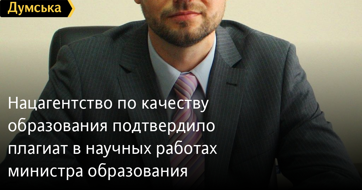 Нацагентство по качеству образования подтвердило плагиат в научных работах министра образованияНациональное агентство по обеспечению качества высшего образования (НАОКВО) подтвердило подозрения о том, что в научных работах и.о. министра образования Сергея Шкарлета есть плагиат. Об этом сообщает Лига.net с заседания Комитета по вопросам этики НАОКВО. Уточняется, что научные работы, в том числе и диссертацию Шкарлета, отправили профессору этики и права в Америке, а также экспертам по вопросам пиратства из Польши и Чехии. Все они обнаружили в наработках и.о министра признаки академического плагиата. В Нацагентстве рассказали, что в отрывках выявили некорректные ссылки. Их собрали в одну таблицу, пообещали структурировать и позже обнародовать итоги исследования на сайте НАОКВО. Как известно, Кабмин проводит расследование относительно возможного нарушения авторских прав со стороны и.о. Минобразования Сергея Шкарлета. При этом начать проверку предложил сам Шкарлет после того, как ему предъявили обвинения. Однако на нынешнее заседание Комиссии он не пришел, а отправил туда своего адвоката. Предыдущие исследования показали, что его диссертация на 90% - плагиат. СМЕРТЬ РОССИЙСКИМ ОККУПАНТАМ! Заметили ошибку? Выделяйте слова с ошибкой и нажимайте control-enter |