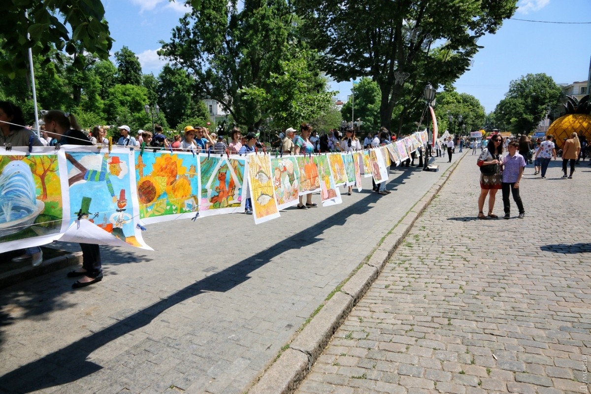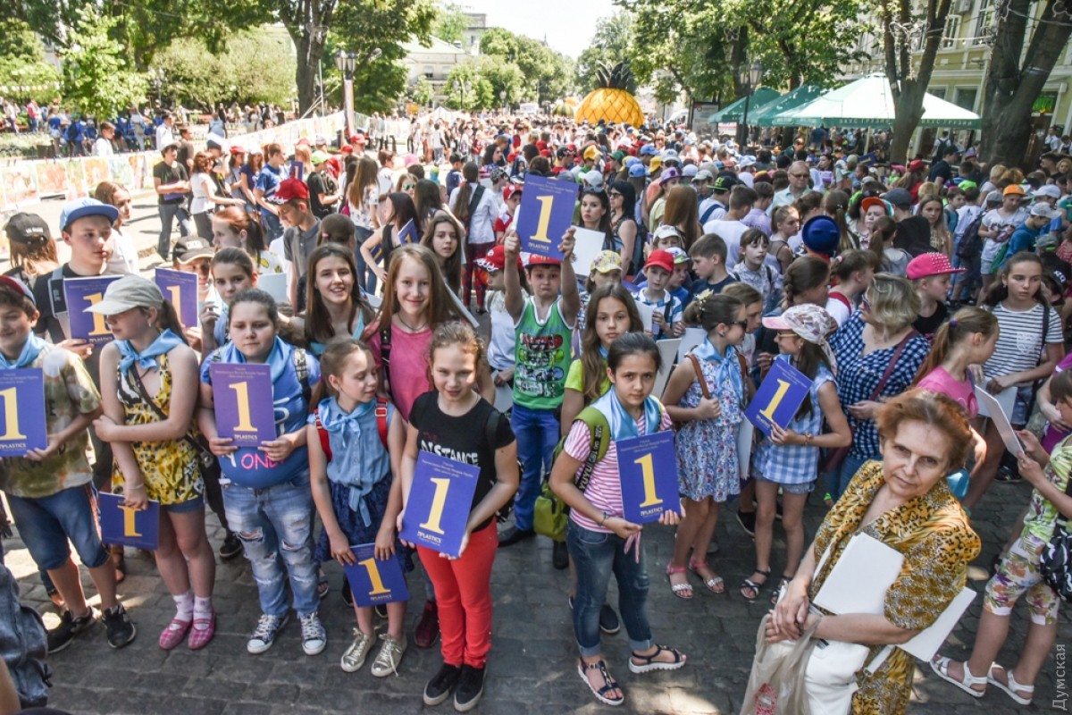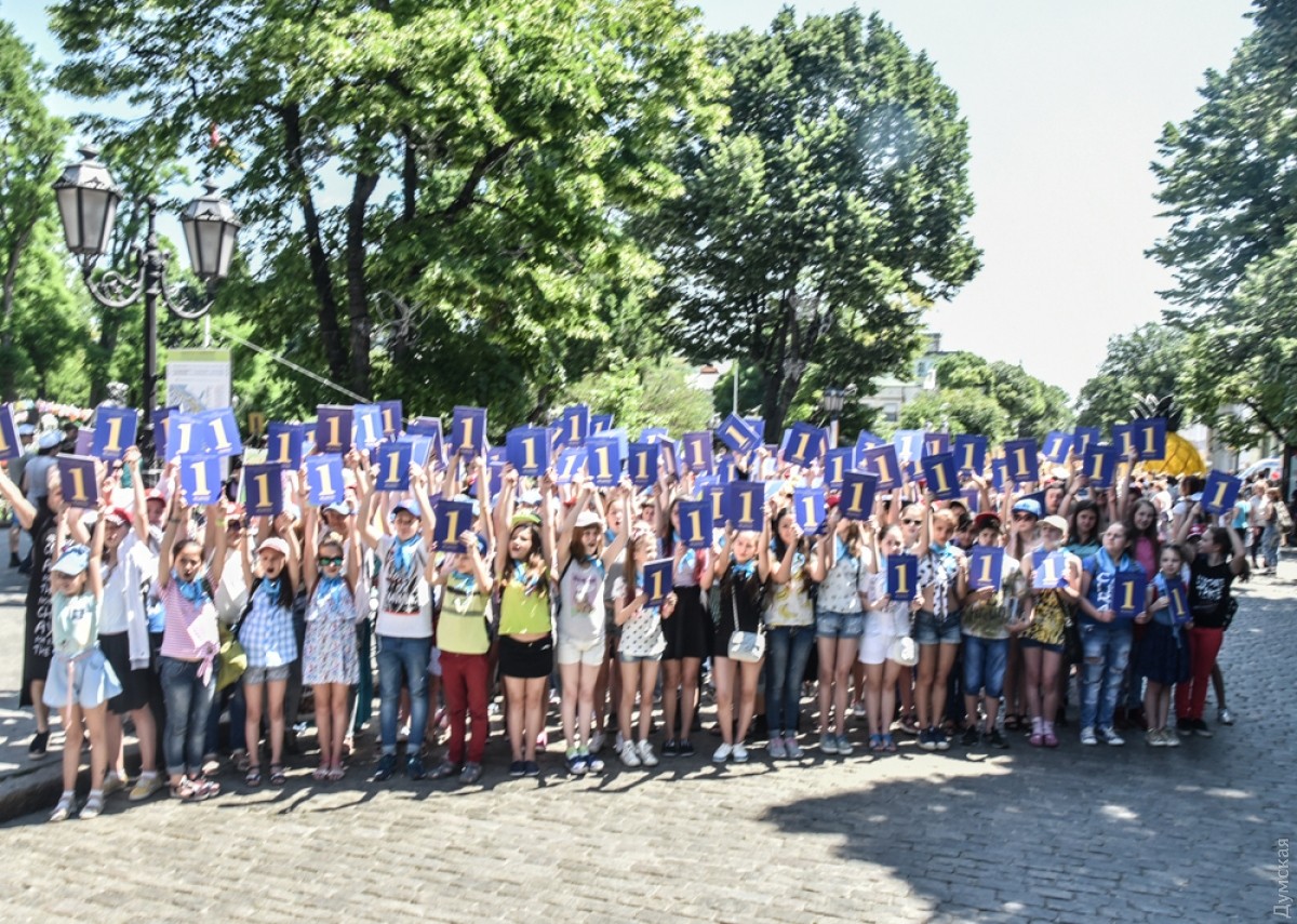 Национальный рекорд: больше тысячи маленьких одесситов выстроились в огромную единицу на Дерибасовской1120 маленьких одесситов выстроились сегодня в огромную цифру «1» на Дерибасовской улице. Получившийся национальный рекорд Украины был официально зарегистрирован. В акции приняли участие дети из многодетных семей, учащиеся интернатов и школ и просто прогуливавшиеся по Дерибасовской дети. Как рассказала «Думской» соорганизатор действа Татьяна Степанова, изначально планировалось, что в построении примет участие ровно тысяча детей, однако в итоге не хватило даже запасных табличек, напечатанных впрок. «Этим рекордом мы хотим привлечь внимание общественности к детям, и в первую очередь, к детям со сложной судьбой, потому что в нашей стране их достаточно много. И если каждый из нас сможет дать таким детям хотя бы немного внимания, участия и заботы, я думаю, в нашем мире станет больше добра и счастливых детей. Единица символизирует начало всего, как дети символизируют начало жизни», — рассказала Татьяна. СМЕРТЬ РОСІЙСЬКИМ ОКУПАНТАМ! Помітили помилку? Виділяйте слова з помилкою та натискайте control-enter |