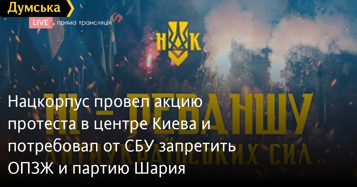 Нацкорпус провел акцию протеста в центре Киева и потребовал от СБУ запретить ОПЗЖ и партию ШарияСегодня днем представители Национального Корпуса вместе с союзническими патриотическими организациями провели в центре Киева акцию протеста против пророссийских политических сил в Украине. Об этом сообщила пресс-служба Нацкорпуса. Активисты двинулись колонной от Софийской площади к зданию СБУ, где передали руководству Службы безопасности Украины документы о снятии с регистрации партии «Шария» и «ОПЗЖ». «ОПЗЖ» и проект Шария за кремлевские деньги занимаются подрывной деятельностью в Украине. Захватив медиапространство, они транслируют пророссийскую пропаганду и навязывают обществу тезисы Кремля», — отметили в Нацкорпусе. После СБУ протестующие отправились к зданию Министерства юстиции, чтобы требовать остановить антигосударственную деятельность пророссийских организаций. В связи с проведением акции центр Киева перекрыли, что привело к транспортному коллапсу. СМЕРТЬ РОССИЙСКИМ ОККУПАНТАМ! Заметили ошибку? Выделяйте слова с ошибкой и нажимайте control-enter |